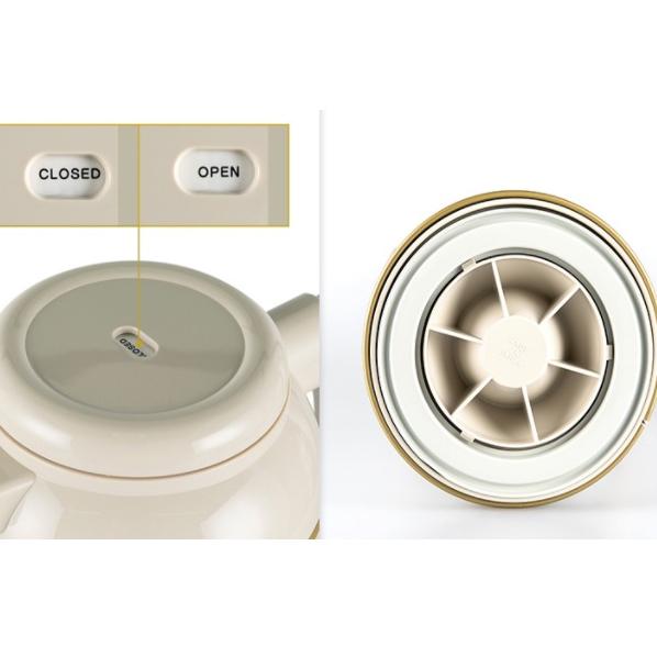 • Rót nước dễ dàng – Nút bấm ngay tay cầm, hạn chế thoát nhiệt và an toàn cho trẻ nhỏ.