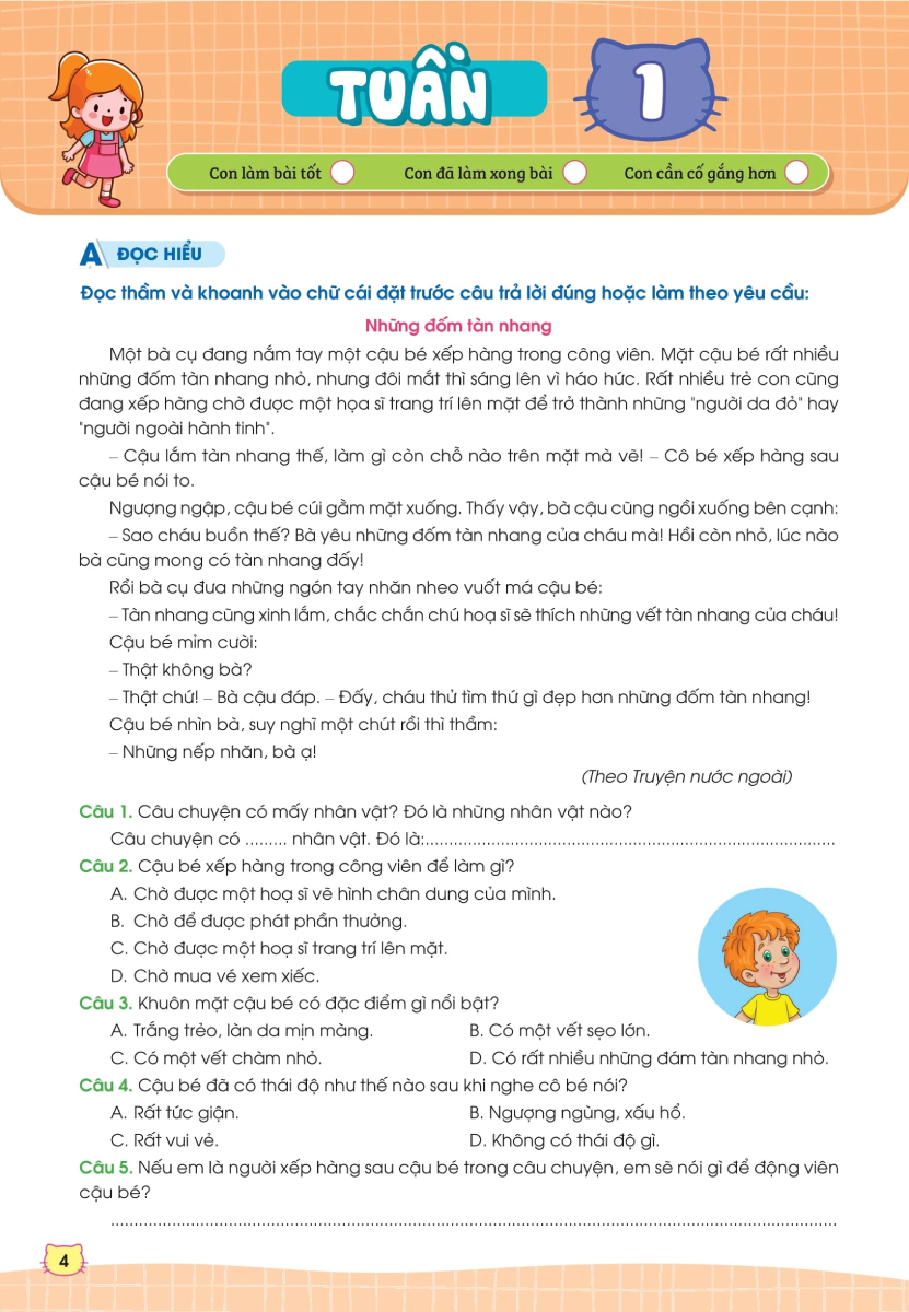 Bộ sách gồm các bài luyện tập chia theo tuần, ôn tập tổng quát kiến thức của 35 tuần học. Ngoài ra, cuốn sách cũng cung cấp các bài kiểm tra giữa kỳ và cuối kỳ để các con trau dồi thêm, tự tin chinh phục điểm cao trong các bài kiểm tra trên lớp.
