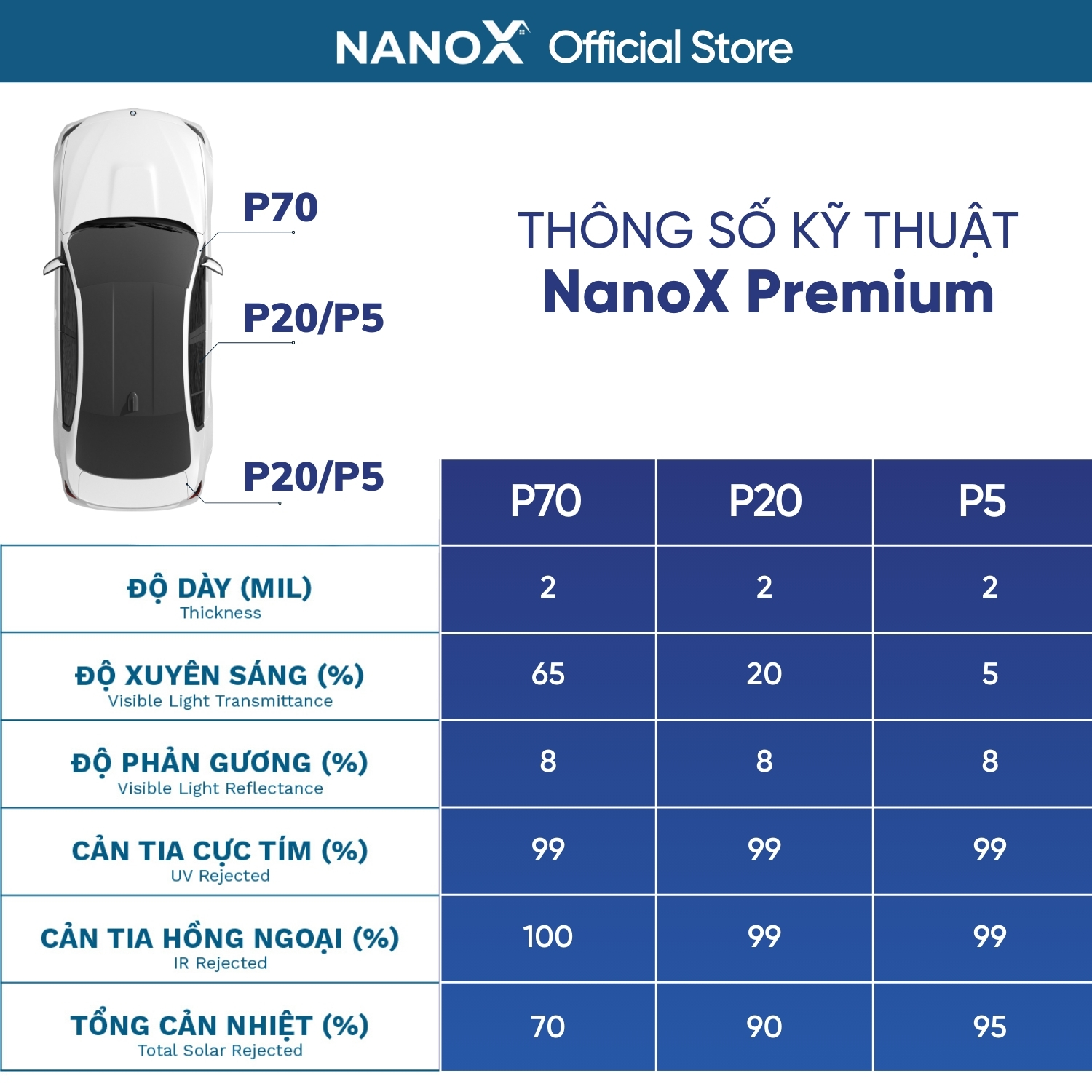 1. Mỗi mã phim cách nhiệt sẽ có thông số kỹ thuật riêng dựa trên các nhu cầu khác nhau. Nếu gặp khó khăn trong lựa chọn, Quý khách vui lòng nhắn tin cho Shop. NanoX luôn sẵn sàng hỗ trợ, tư vấn giúp Quý khách chọn được mã phim phù hợp nhất.