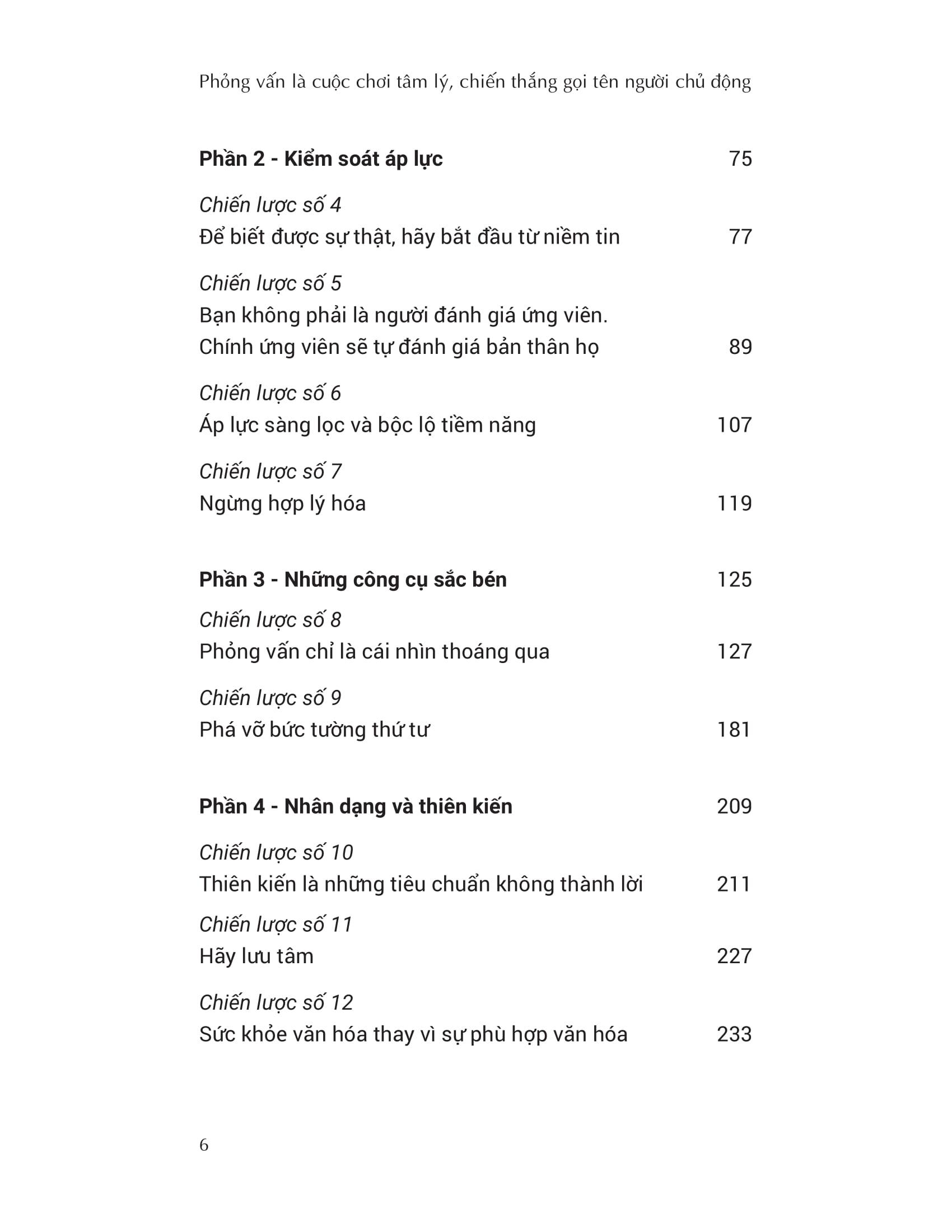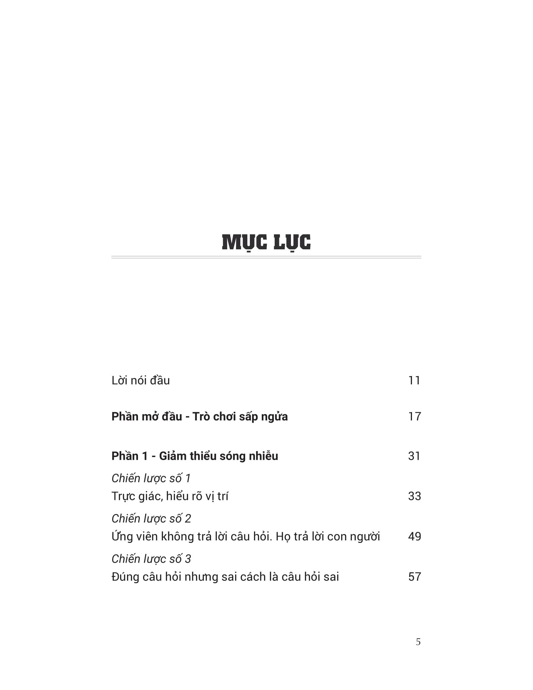 Cuốn sách gồm 12 chiến lược đã được chứng minh hiệu quả và cũng đã được sử dụng để sàng lọc ứng viên với xác suất chính xác lên tới 90%. Dù là quản lý bộ phận nhân sư, chủ doanh nghiệp, CEO, tư vấn viên, trưởng nhóm, thành viên nhóm hay chuyên gia phỏng vấn, phương pháp của Chaka ứng dụng cho bất kỳ ai muốn đánh bại tính may rủi trong các quyết định tuyển dụng. Mặt khác, ở cương vị ứng viên, cuốn sách cho bạn góp nhìn khác biệt vào không khí phòng phỏng vấn, diễn biến tâm lý người phỏng vấn và yêu cầu của họ đối với ứng viên tiềm năng. Nói cách khác, ở vị trí doanh nghiệp, phương pháp của Chaka giúp bạn phỏng vấn đúng cách và sàng lọc đúng người. Trong khi đó, ở vị trí ứng viên, cuốn sách là tất cả những điều bạn cần để chuẩn bị, nắm bắt tâm lý người phỏng vấn và trả lời khôn ngoan.