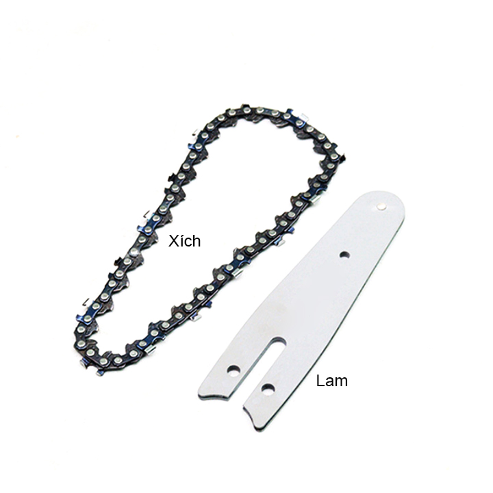 Lam, Xích được thiết kế chuyên dùng cho máy cưa xích cầm tay chạy pin, có loại 4 inch hoặc 6 inch tùy chọn. Xích làm bằng thép cứng, sắc bén, chịu mài mòn cao, Lam (Miếng dẫn hướng xích) thế hệ mới không cần bôi trơn