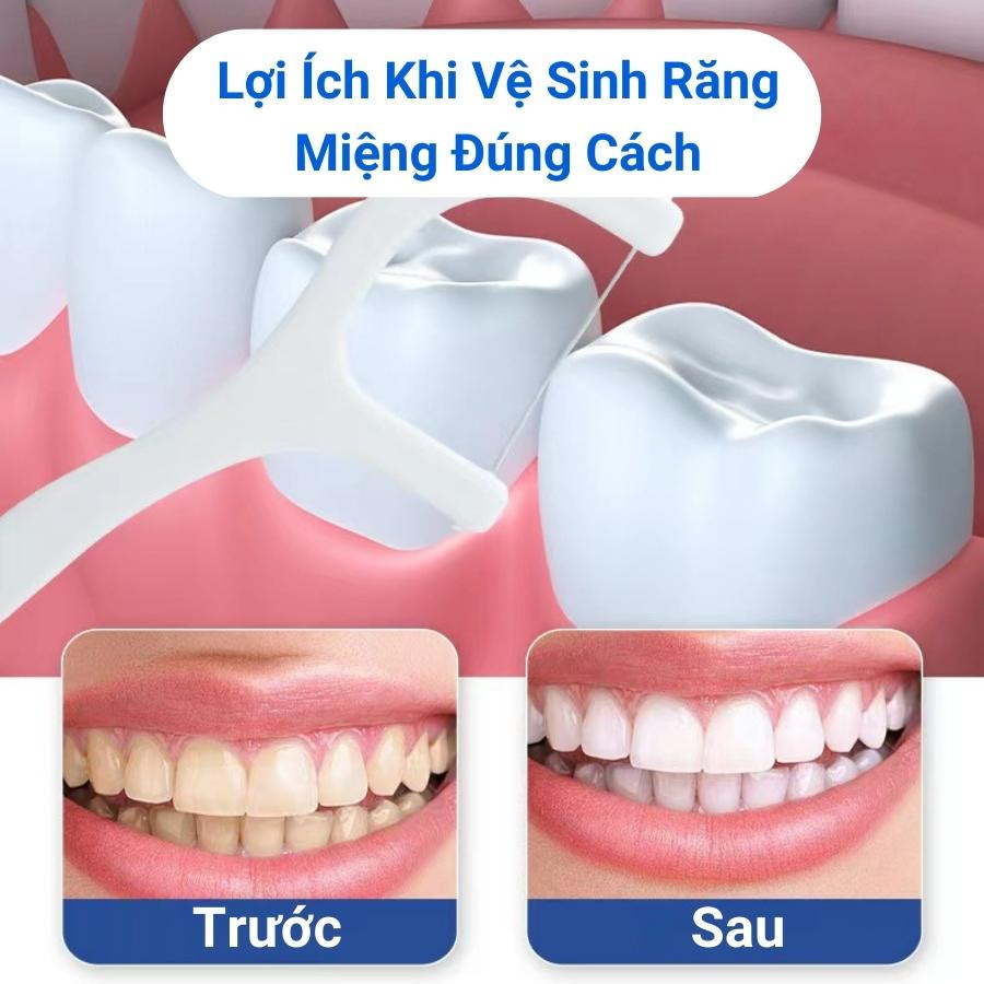 -Dùng tăm chỉ nha khoa mỗi ngày ,giúp răng miệng sạch sẽ ,răng chắc khỏe và miệng không hôi