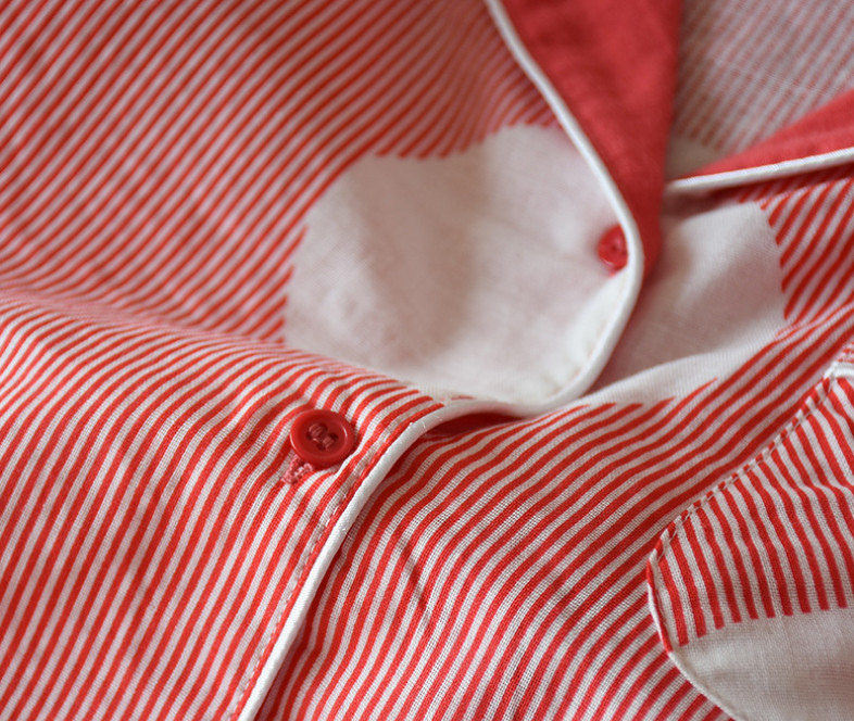 Áo có tay ngắn, cổ áo bo vừa vặn, kết hợp túi trước ngực và được phối viền độc đáo. Dễ dàng phối với bất kỳ quần loại quần mặc nhà nào với màu sắc