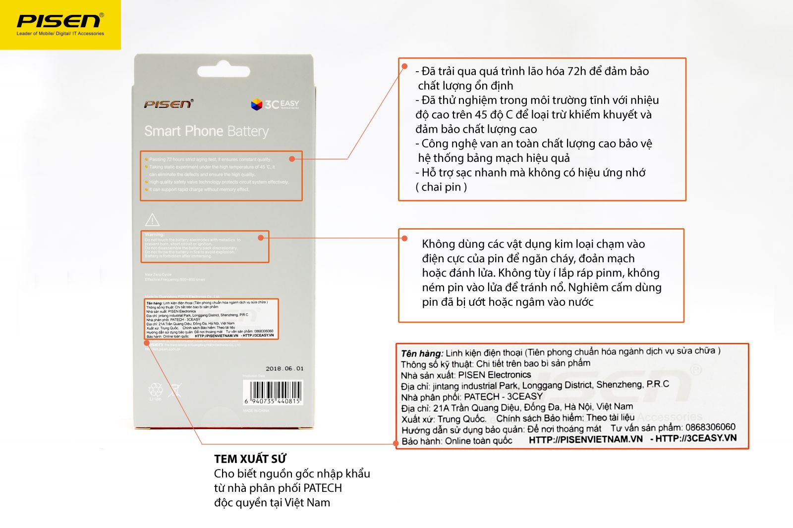 Nhà sản xuất: PISEN GROUP Pin Pisen dung lượng chuẩn tương tự pin gốc Apple về cả phần cứng lẫn phần mềm Điểm đặc biệt của dòng pin Li-ion Polymer có thể duy trì được