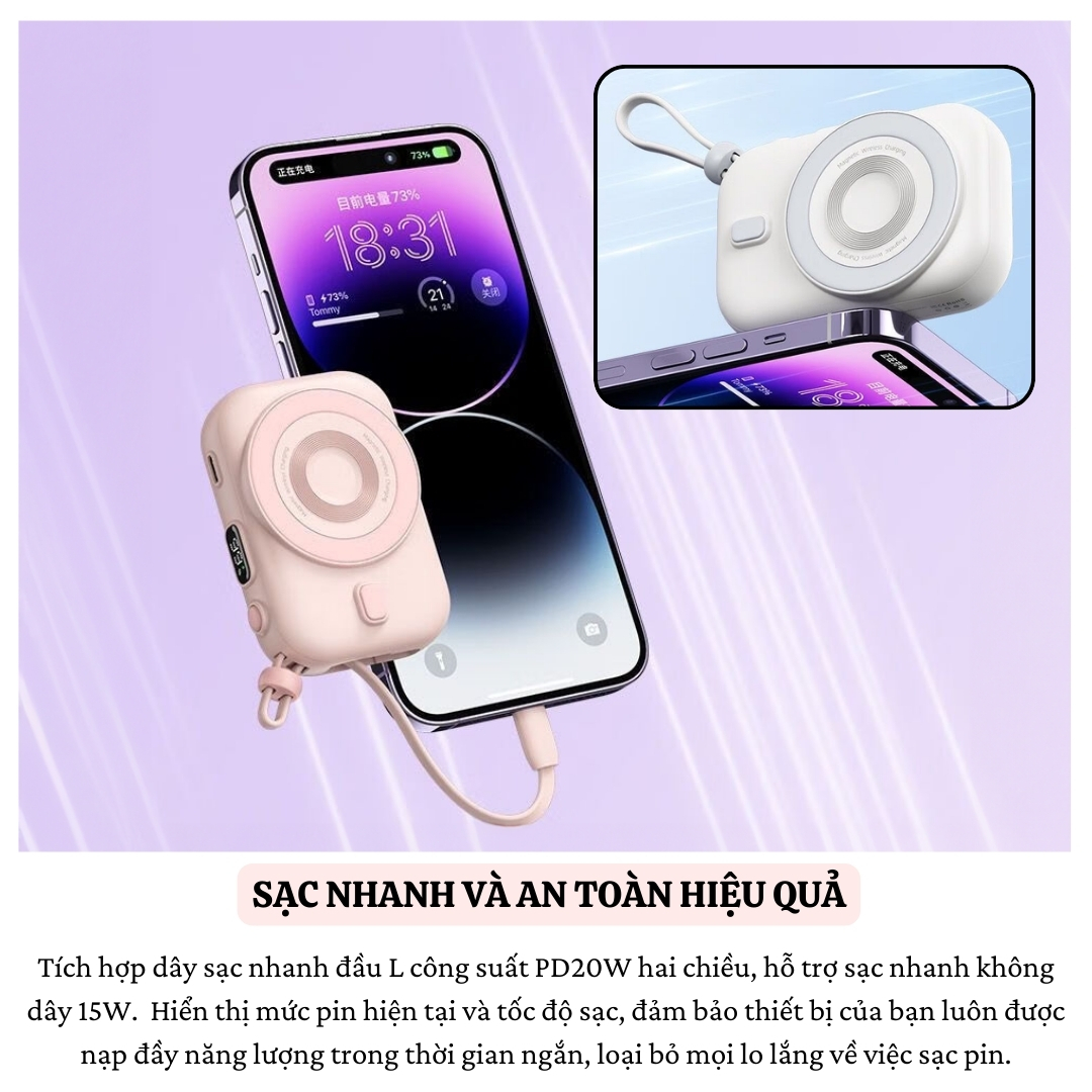 Chiếc pin dự phòng này được thiết kế để đáp ứng nhu cầu sạc nhanh và linh hoạt cho các thiết bị di động. Với dung lượng lớn 10.000 mAh (hai cell 5.000 mAh) giúp