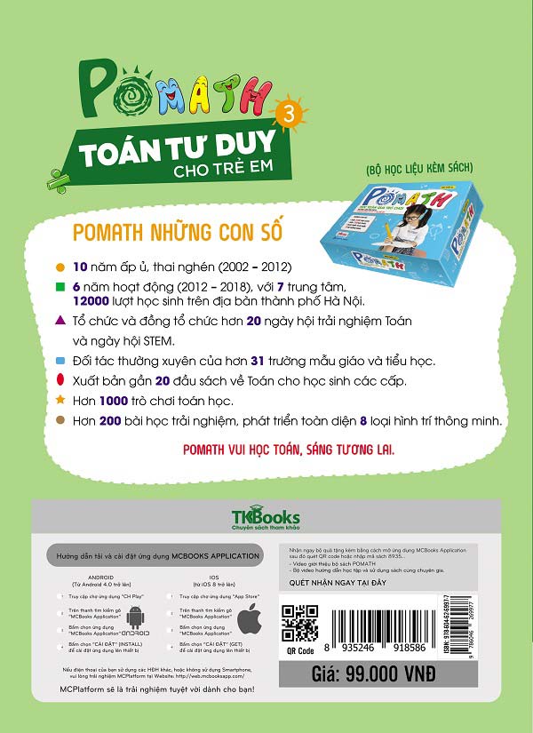 Mua tại TiktokPomath – Toán tư duy cho trẻ em từ 4 – 6 tuổi POMATH – PHƯƠNG PHÁP TOÁN HAY – GIỎI NGAY TỪ SỚM Phương pháp POMath đã nghiên cứu trong gần 17 năm từ năm 2002 và được chứng nhận bởi viện nghiên cứu và chuyển giao công nghệ giáo dục từ tháng 9/2012.