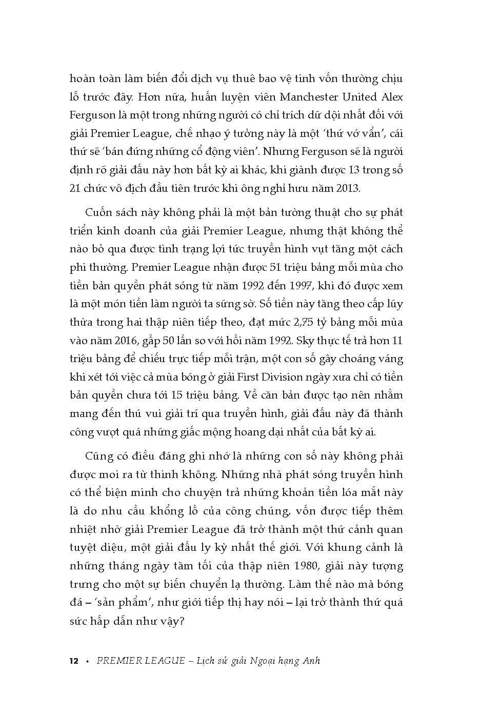 Mặc dù Premier League tương đồng về mặt cấu trúc thi đấu cơ bản với tiền thân của nó, giải First Division xưa cũ, nhưng giải đấu hàng đầu nước Anh này được lợi từ việc đặt tên lại thương hiệu khi xét đến những vấn đề trước đó, và năm 1992 không phải là thời điểm khởi đầu hoàn toàn tuỳ hứng cho thời hiện đại của bóng đá – như sẽ được giải thích trong chương đầu sách!
