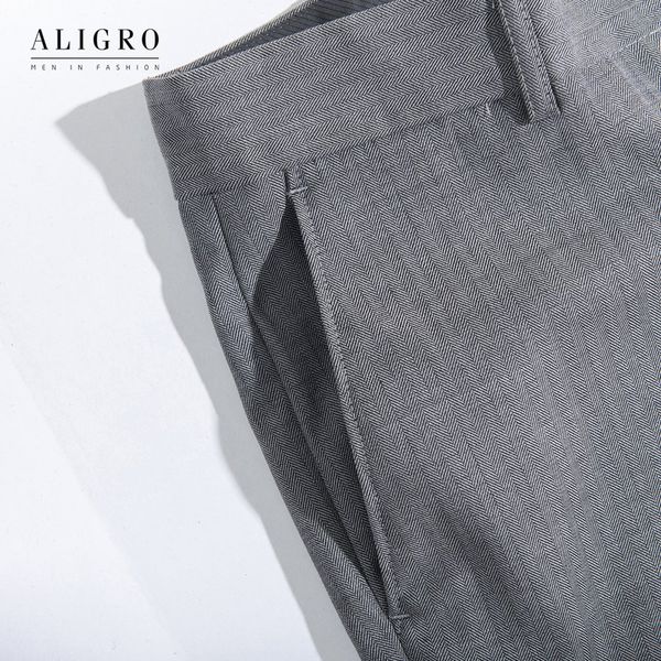 ✨Quần âu nam ALIGRO màu xám kẻ,chuẩn form slimfit, chất vải nano cao cấp tôn dáng ALGO1037