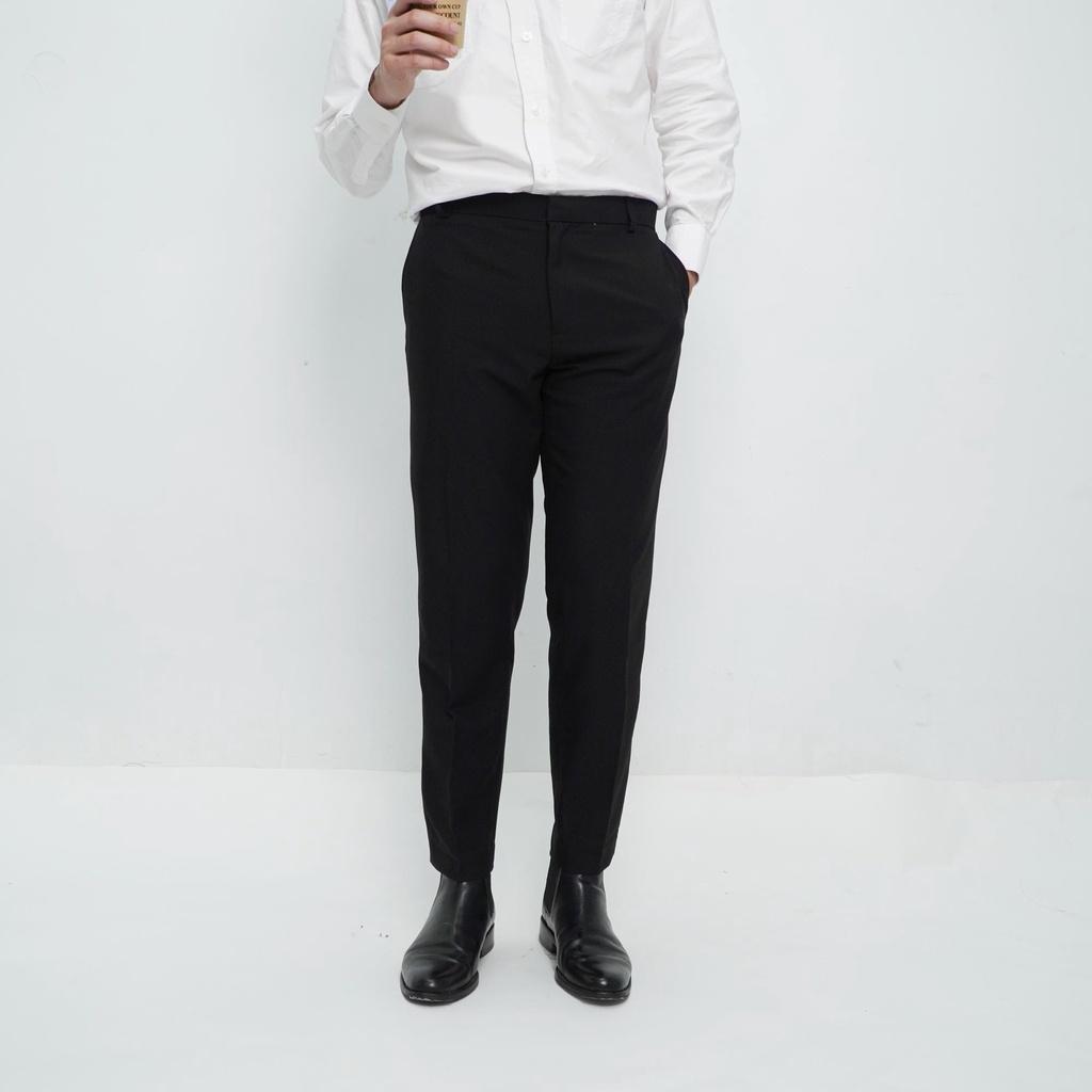 Quần tây nam màu đen form suông dài ngang mắt cá chân. Form Slim cropped - ROUTINE 10F24PFO002 | LASTORE MENSWEAR Đặc điểm nổi bật Form : Slim cropped Fabric : Poly Rayon Spandex Gender: