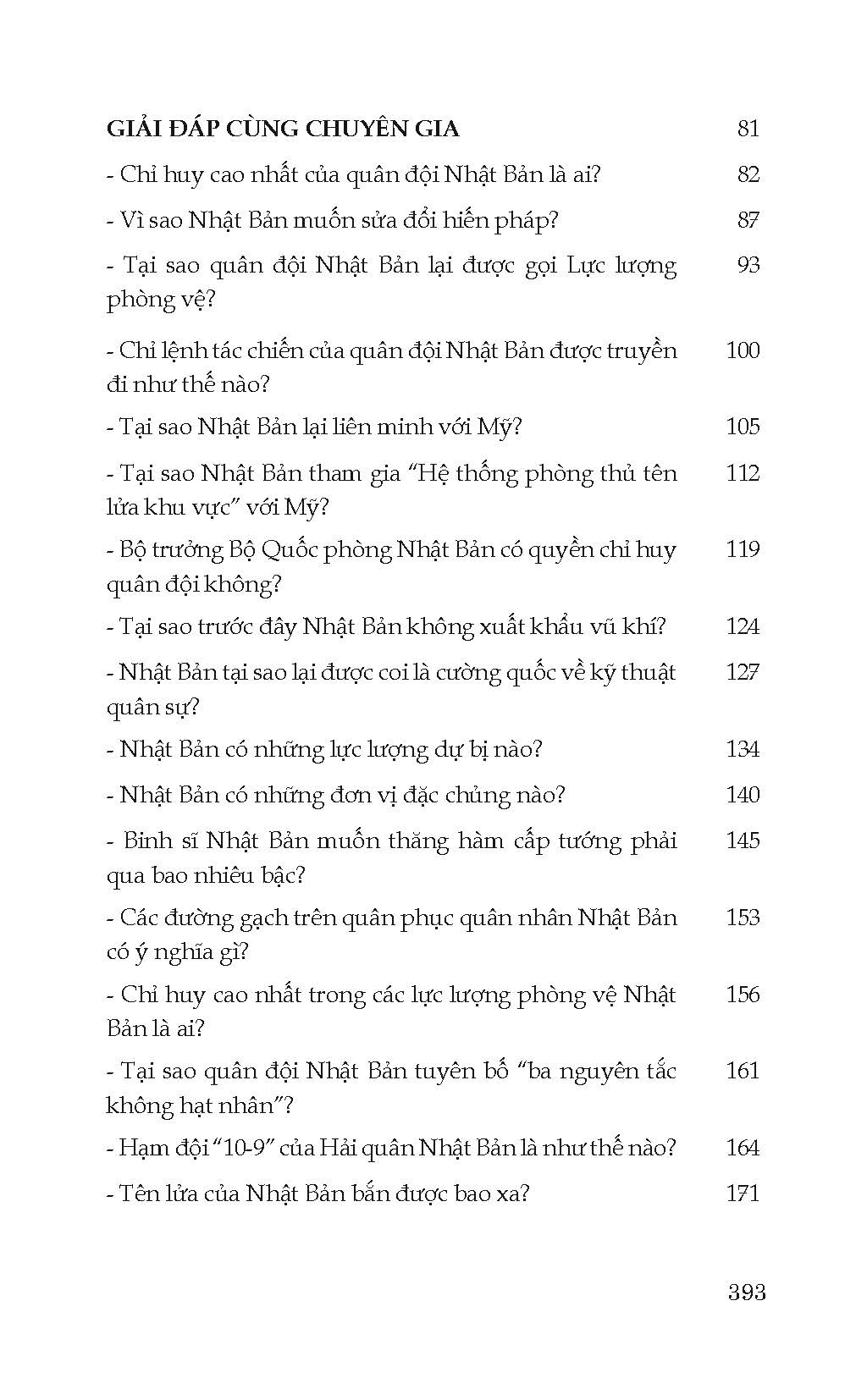 Mỗi cuốn sách được chia làm các chủ đề lần lượt là: Tham quan trọng điểm, Giải đáp thắc mắc, Giải mã hồ sơ lịch sử, Tin tức hậu trường, Bí mật quân sự, Giải đáp kỹ thuật quân sự