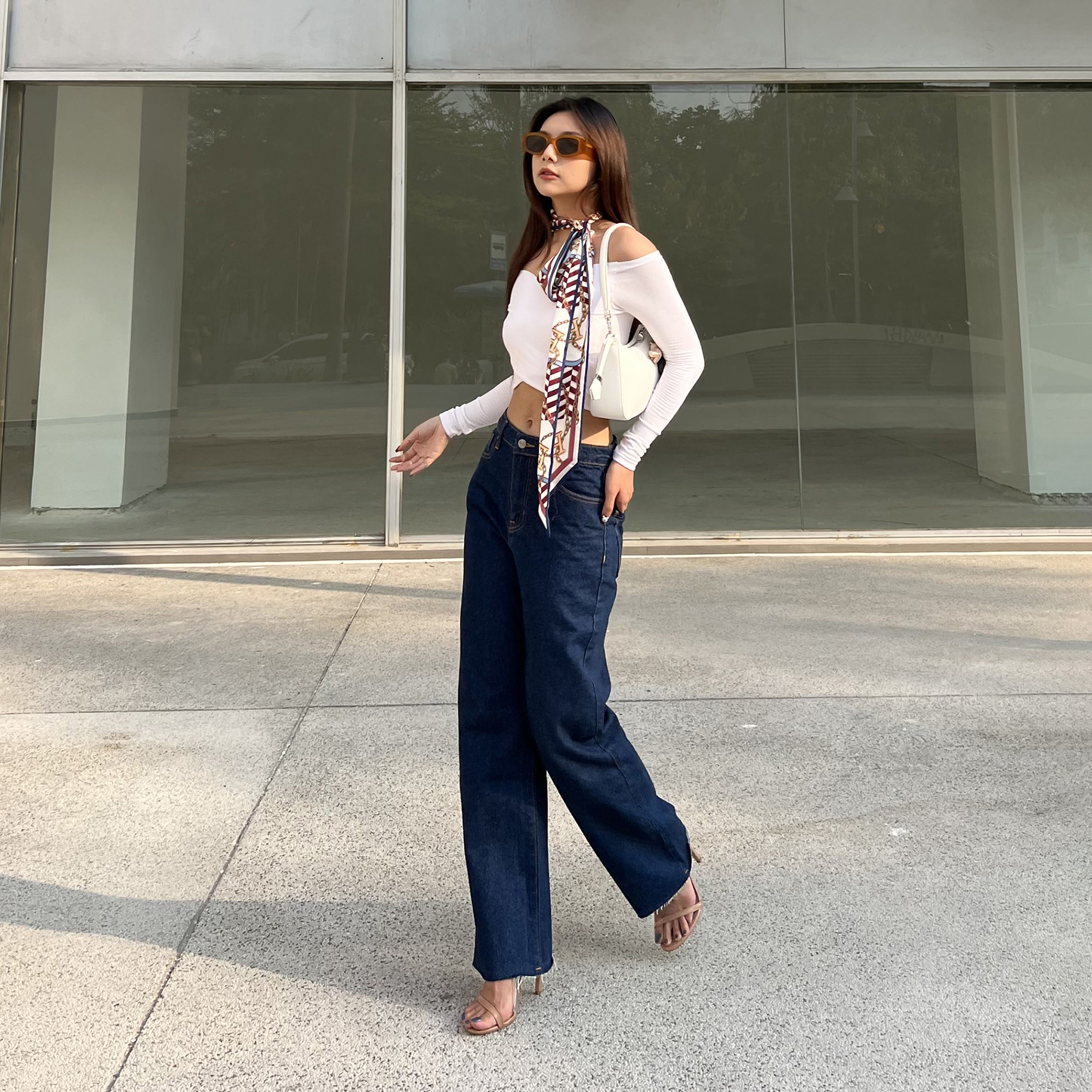 Mô tả sản phẩm - Quần jean ống rộng sẽ giúp chiều cao của bạn được “ăn gian” đáng kể với hiệu ứng kéo dài chân và che khuyết điểm đặc trưng của kiểu quần