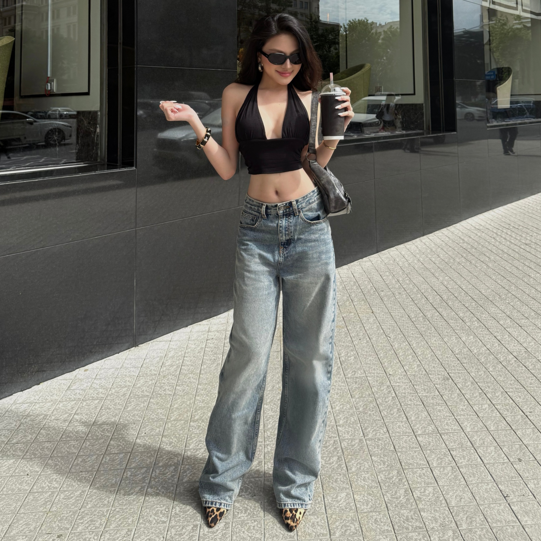 Review quần jean ống rộng lưng cao nhà Aaa Jeans