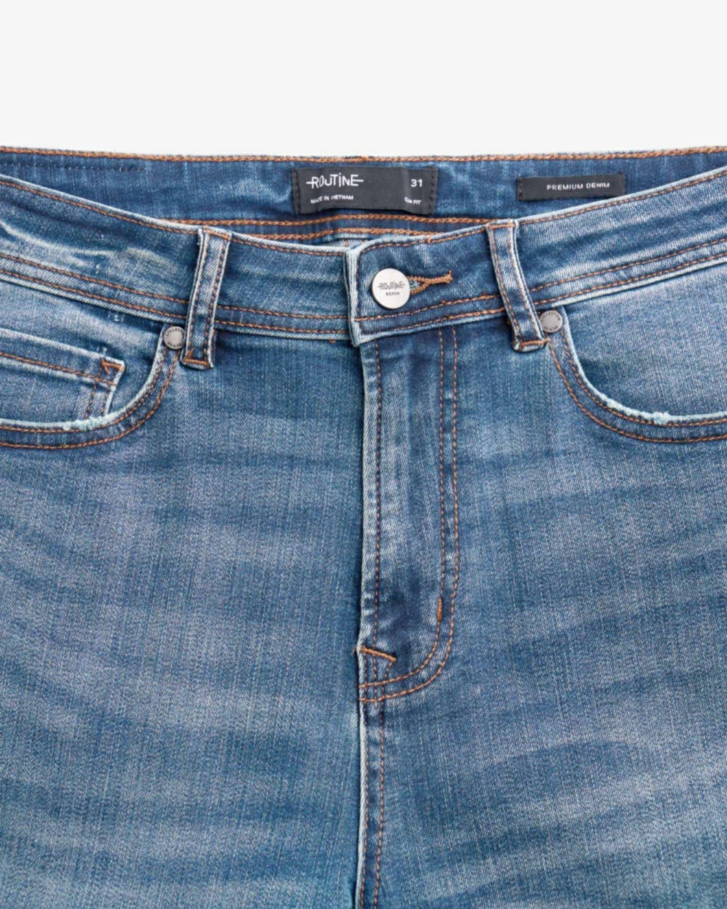 Quần jeans nam trơn ROUTINE Form Slim Premium màu Xanh INDIGO - ROUTINE 10F23DPA012P  Quần Jean Nam ROUTINE Ống Ôm Xanh Trơn Cotton Spandex Form Slim - 10S24DPA004R1 | ROUTINE CÀ MAU
