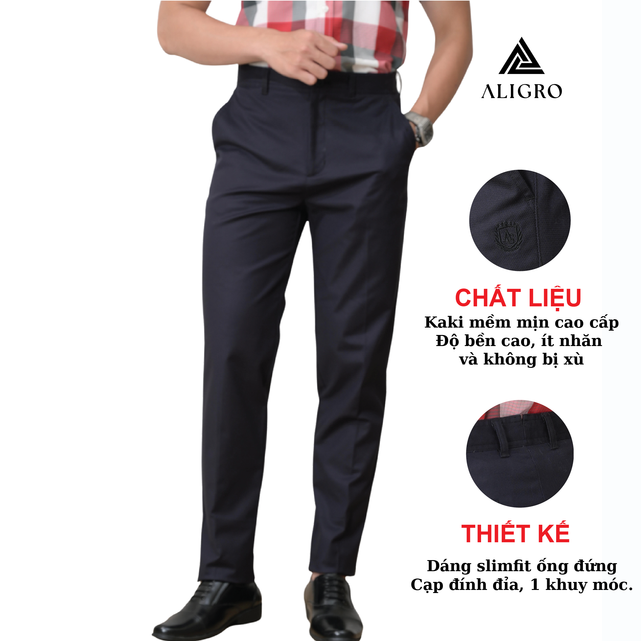 ✨Quần kaki nam ALIGRO chất liệu kaki mềm mịn cao cấp dáng slimfit màu đen ALGK073