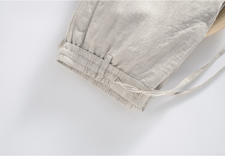 ✨Quần linen nam ống suông, quần dài ống rộng cạp chun có dây rút và khuy trước, phong cách tối giản, vintage Qd11