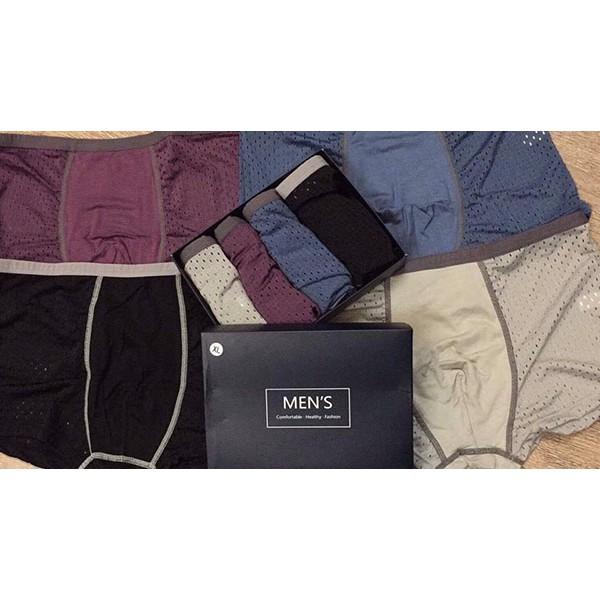 Quần lót nam thông hơi - HỘP 4 CHIẾC - Quần sịp đùi nam Hàng loại 1 Chất Liệu: Siêu mềm, siêu mịn, co giãn thoải mái, thông thoáng mát lạnh - Size XL :45-60kg