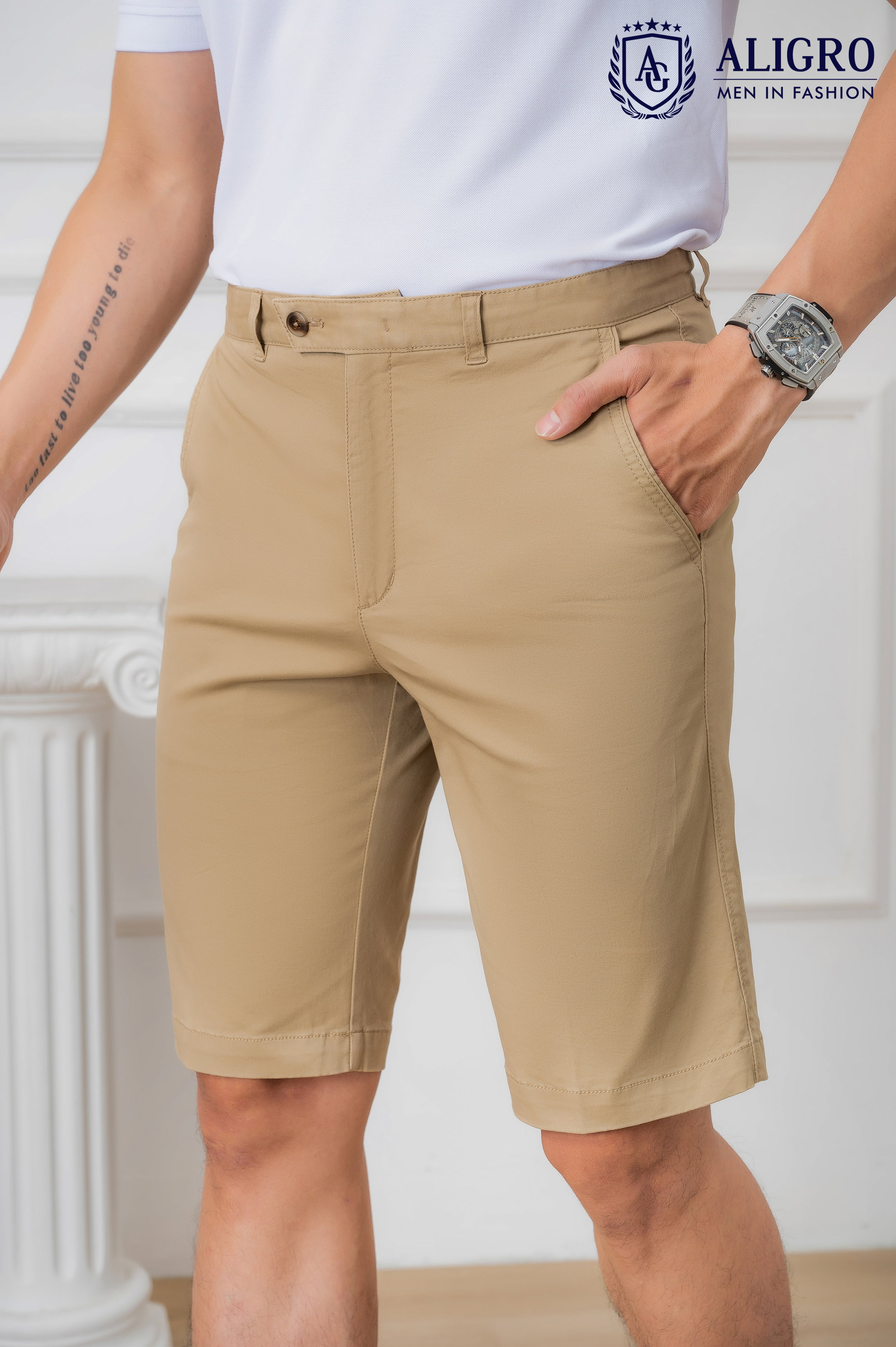 ✨Quần short nam ALIGRO chất liệu kaki màu be dáng basic trẻ trung năng động ALGQS1074