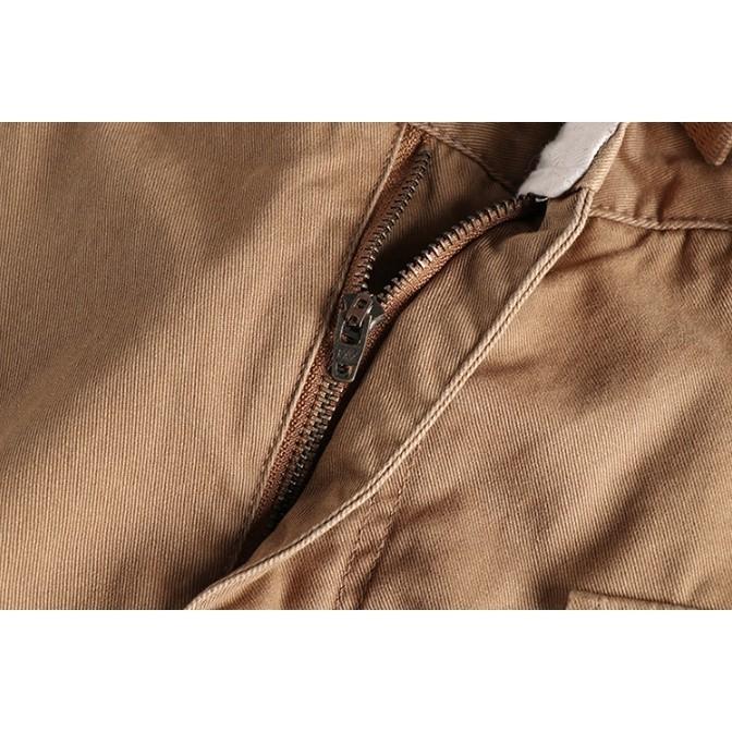 Shorts đùi kaki túi hộp khoá kéo phối dây kèm thắt lưng điều chỉnh đc