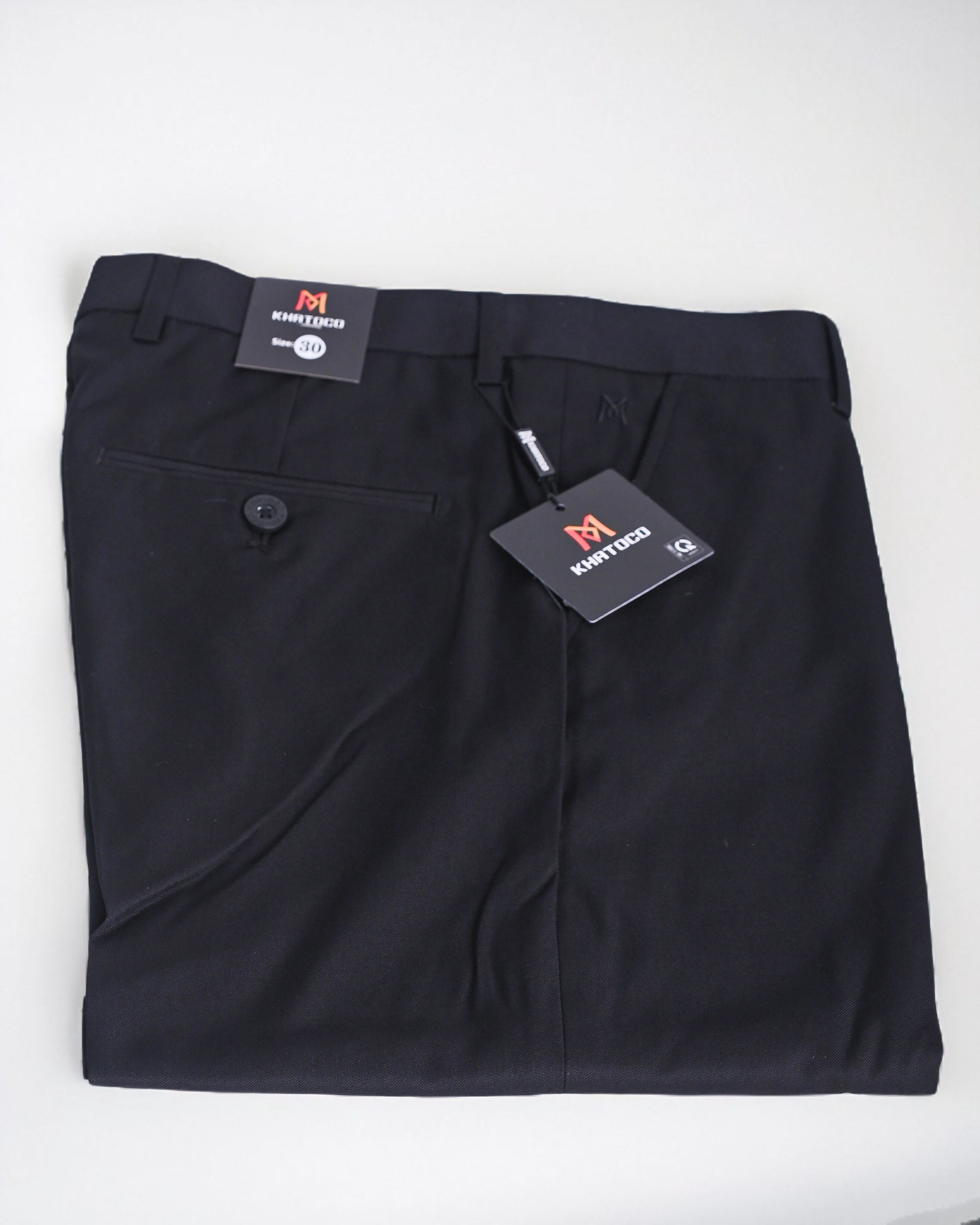 Quần tây Khatoco đen không ly – item không thể thiếu trong tủ đồ phái mạnh, dễ dàng kết hợp với nhiều phong cách từ công sở đến dự tiệc.