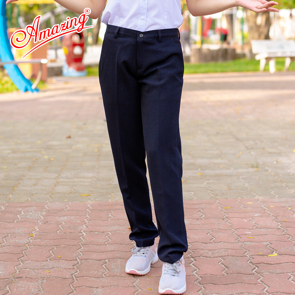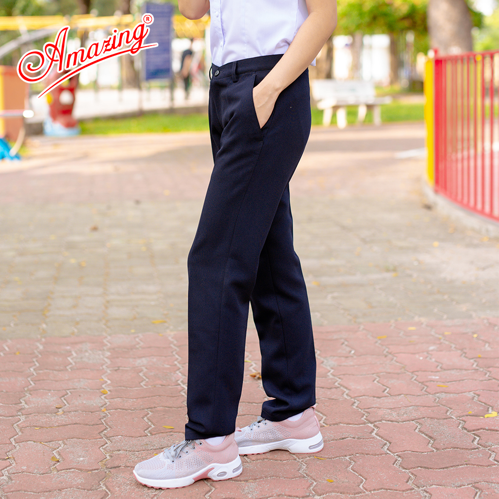 Quần tây nữ màu Xanh đen lưng vừa, dáng suông, chất liệu tuyết mưa dày, mềm, không nhàu, hiệu Amazing - Thương hiệu thời trang Amazing trực thuộc bản quyền của công ty TNHH thời