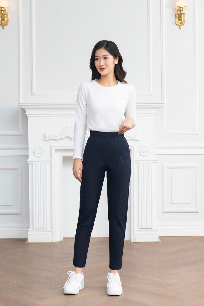 Quần dài cạp cao Thun Trơn Just Feel Free - Chất màu hiện đại và sang trọng, vải trơn dày dặn ôm sát tôn dáng người mặc - Chất trơn bóng cao cấp, vải êm