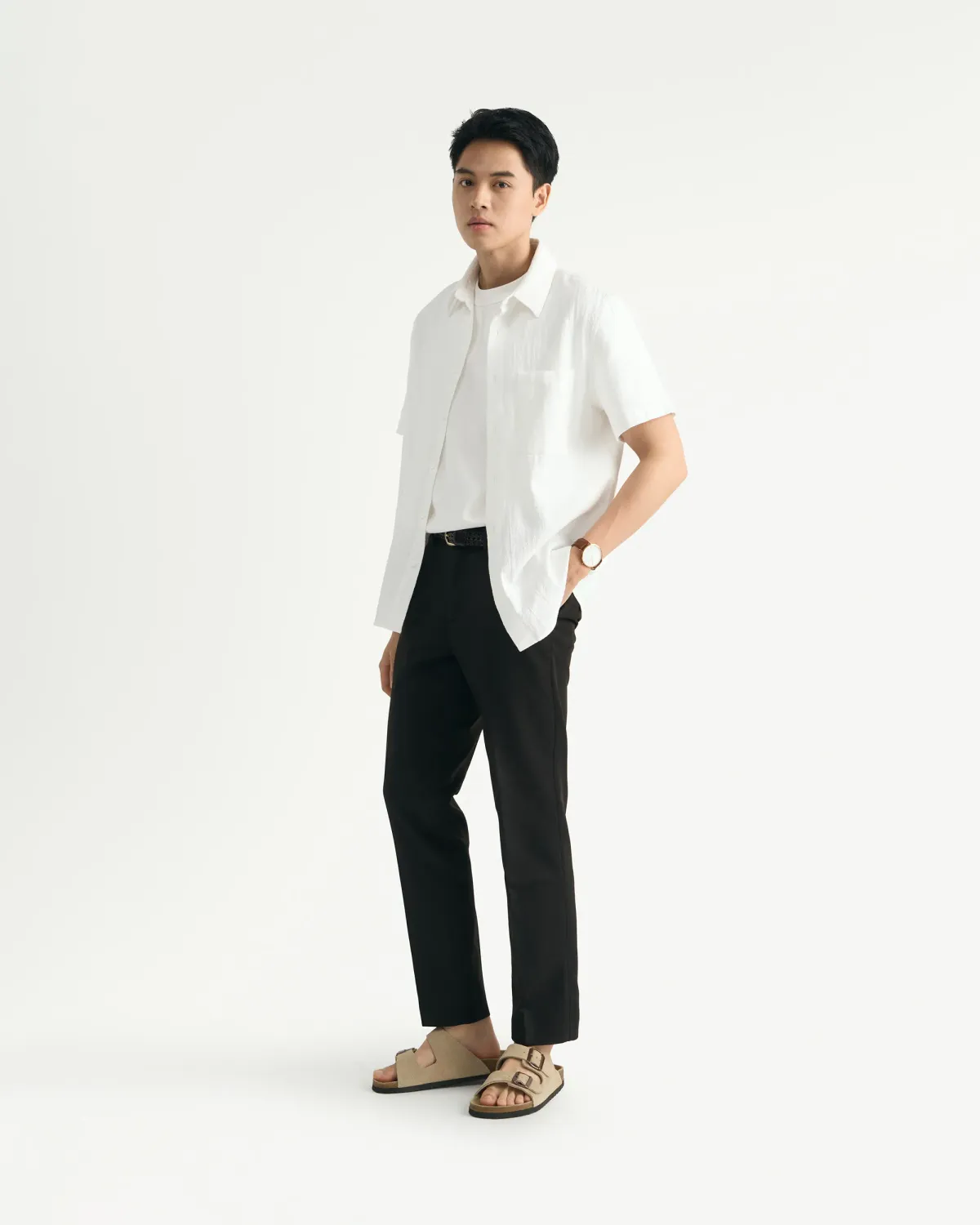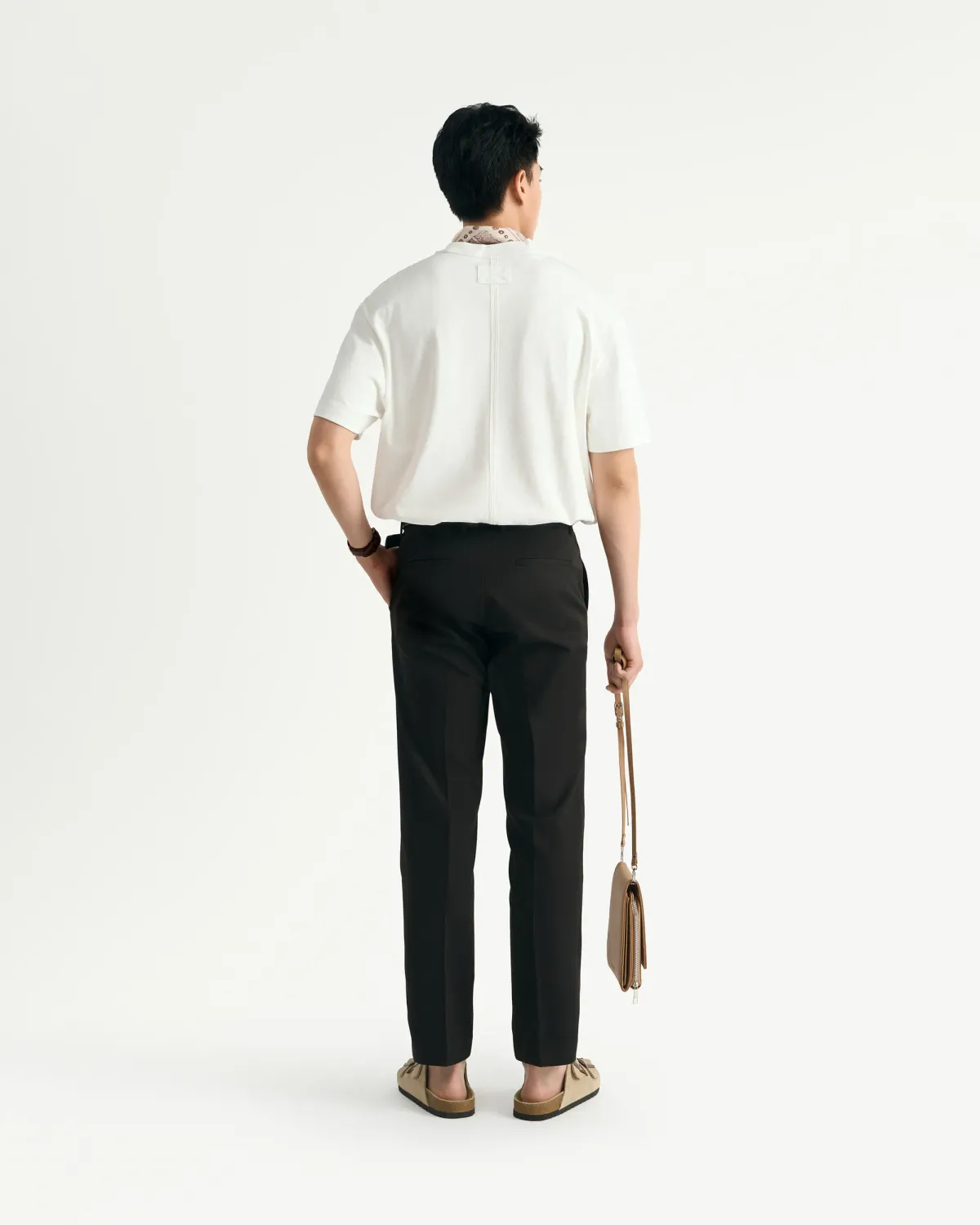 Quần tây nam màu đen form suông dài ngang mắt cá chân. Form Slim cropped - ROUTINE 10F24PFO002 | LASTORE MENSWEAR Đặc điểm nổi bật Form : Slim cropped Fabric : Poly Rayon Spandex Gender: