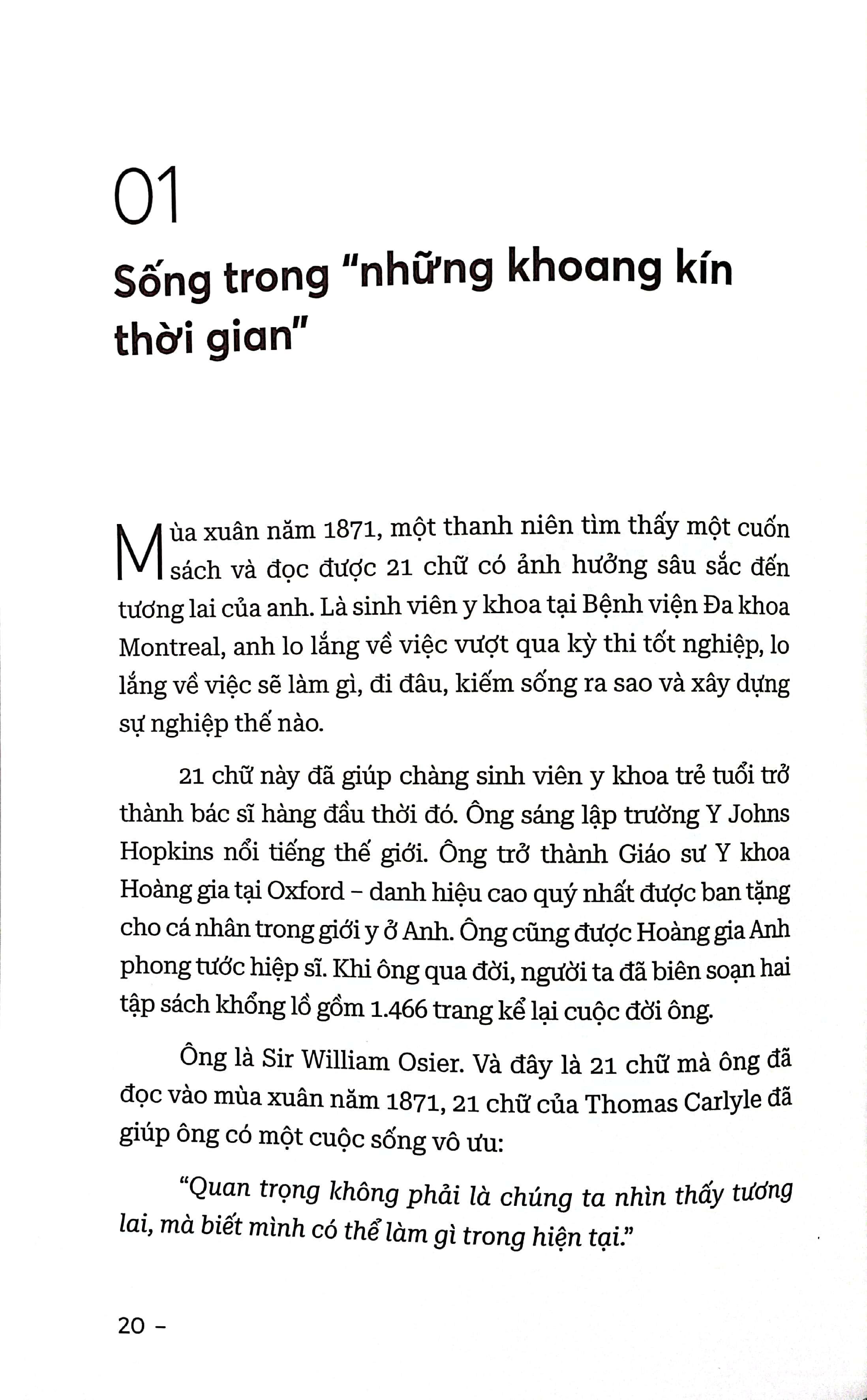 “Hãy đóng chặt những cánh cửa nặng nề dẫn đến quá khứ và tương lai. Hãy sống với ngày hôm nay, tận dụng tối đa 24 giờ quý giá của một ngày.”