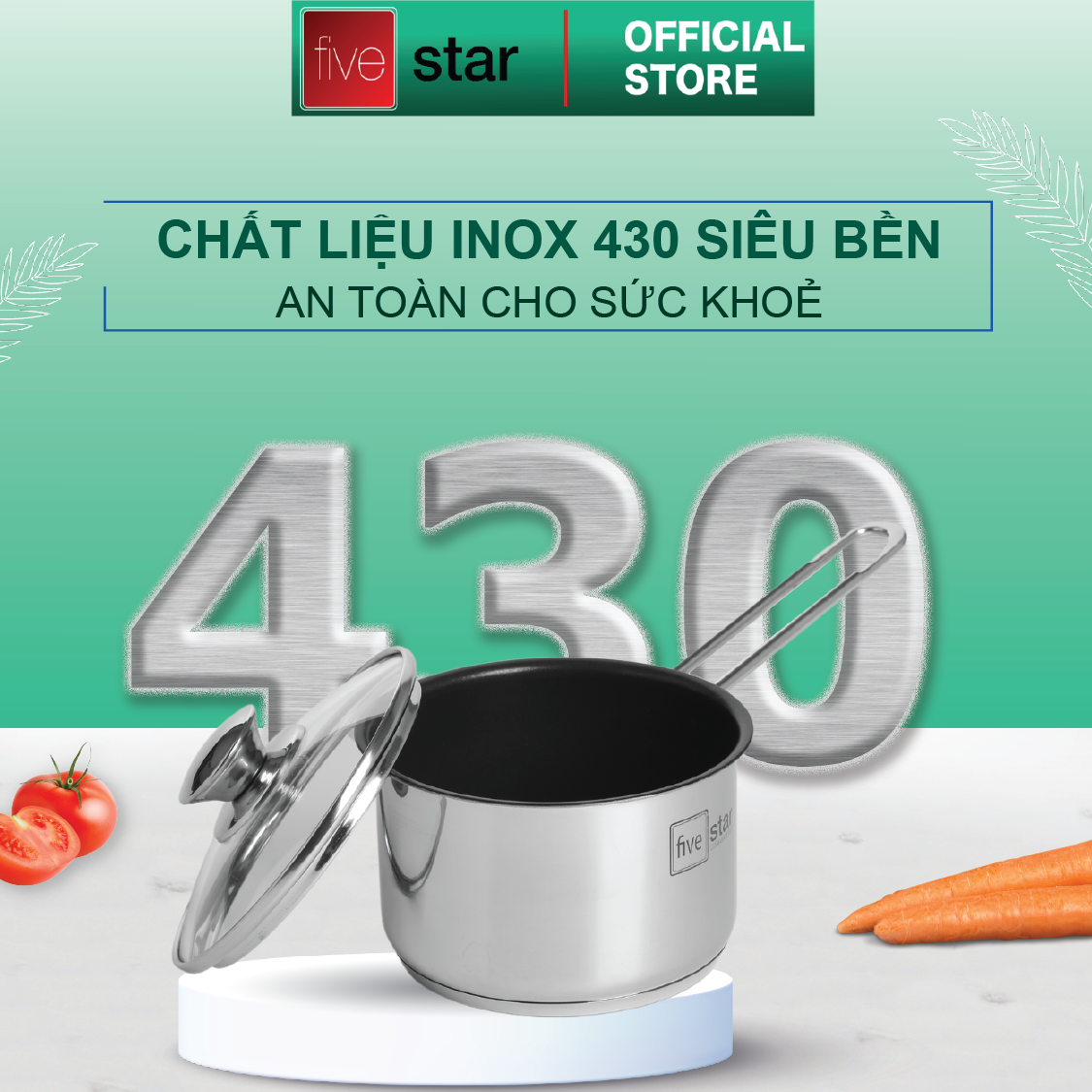 ✨Quánh chống dính 3 đáy inox 430 cao cấp Fivestar Standard nắp kính bếp từ (12cm/14cm) , tặng 5 muỗng ăn