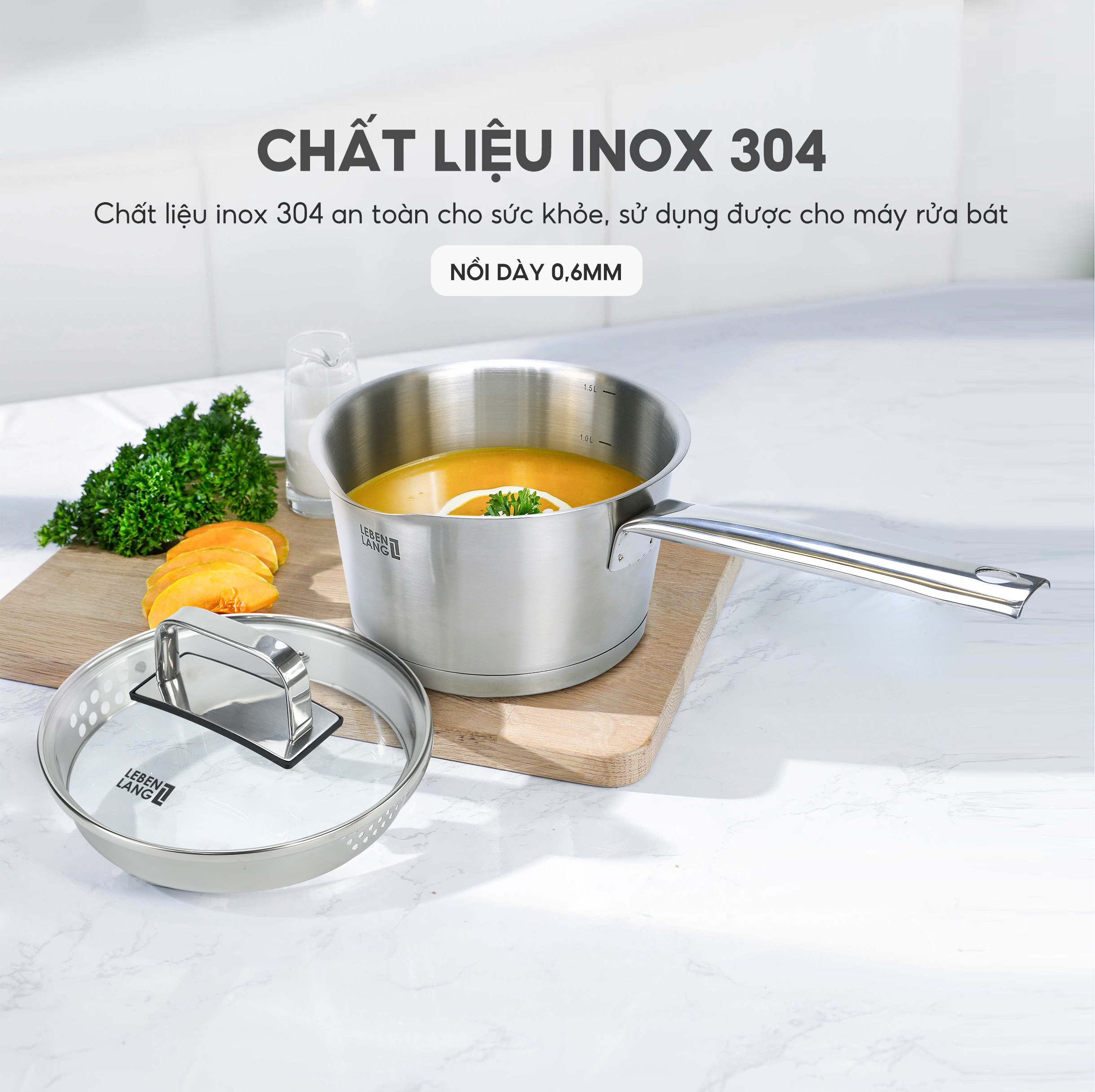 An Toàn Và Hiệu Quả: Quánh Inox 304 Vung Kính Đáy 3 Lớp Lebenlang LBL2528 là trợ thủ đáng tin cậy trong bếp của bạn. Chất liệu Inox 304 không chỉ bền bỉ mà còn an toàn cho sức khỏe của gia đình bạn.