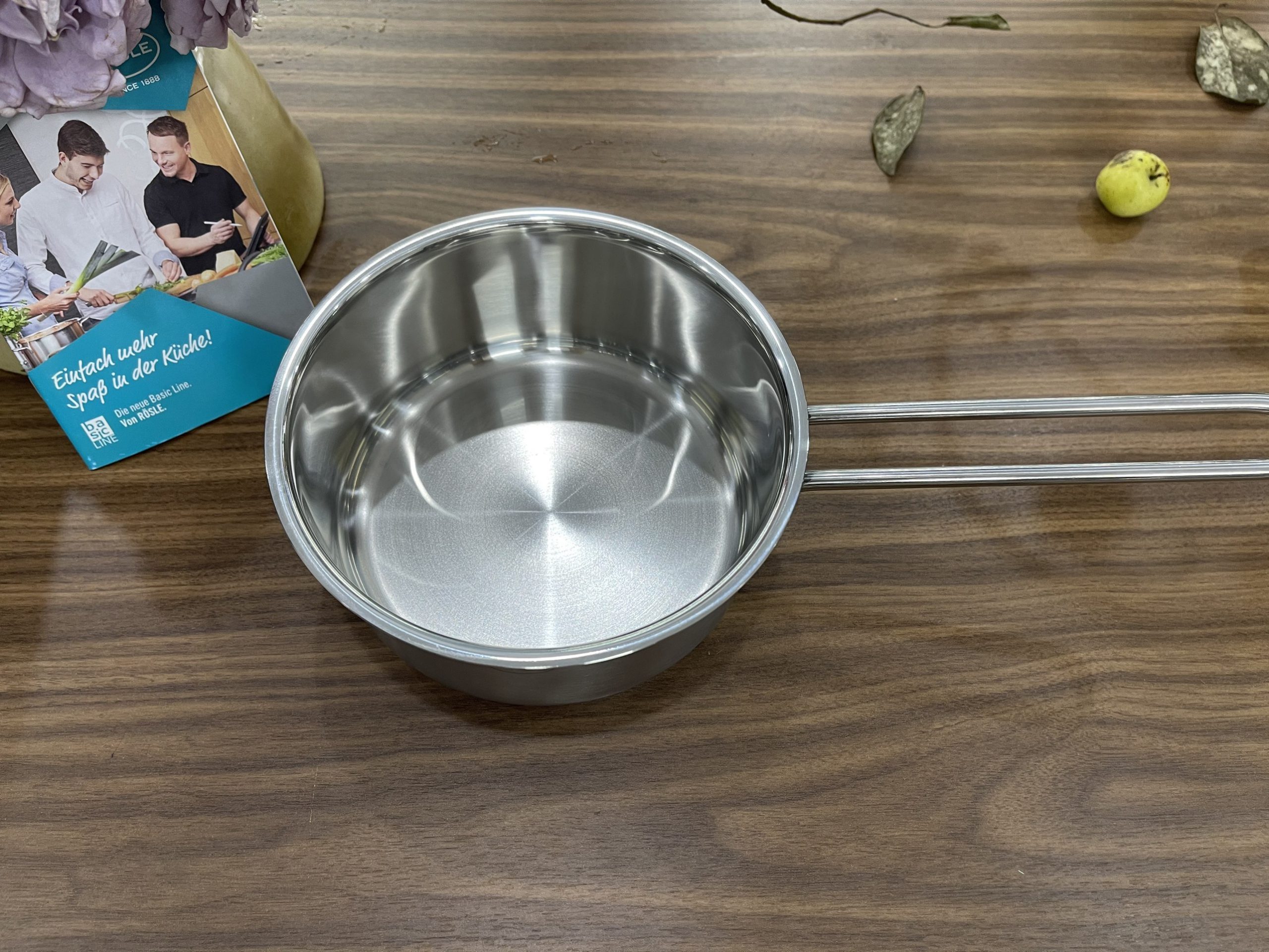 • Quánh Rösle Basic Line : Nồi nấu để chuẩn bị các món ăn nhỏ trong bất kỳ bữa ăn nào – lý tưởng để hâm nóng súp, rau và nước sốt, nhưng cũng có thể dùng để nấu bánh pudding hoặc cháo thơm ngon.
