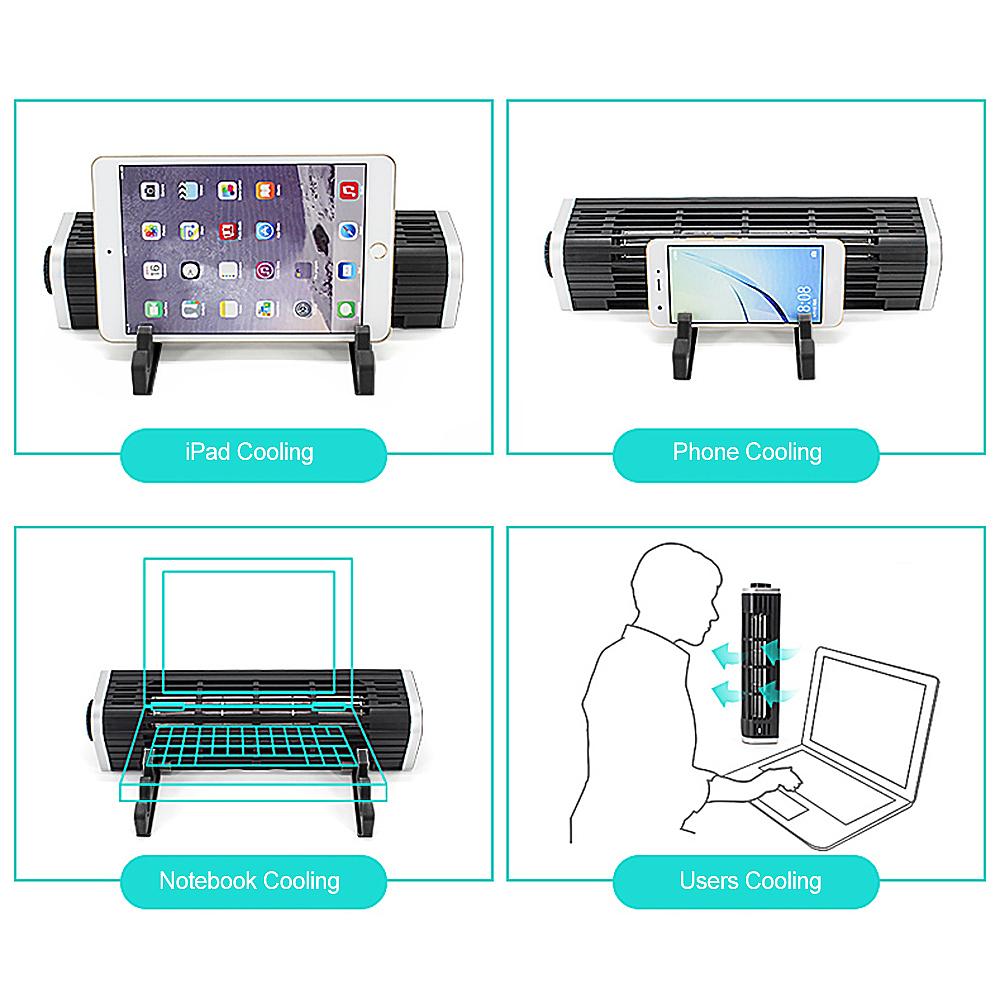 The USB cooling fan with compact size, it is portable for you to use. With adjustable stand for all size of devices. Vertical or horizontal cooling for notebook, tablet, smart phone and user.
