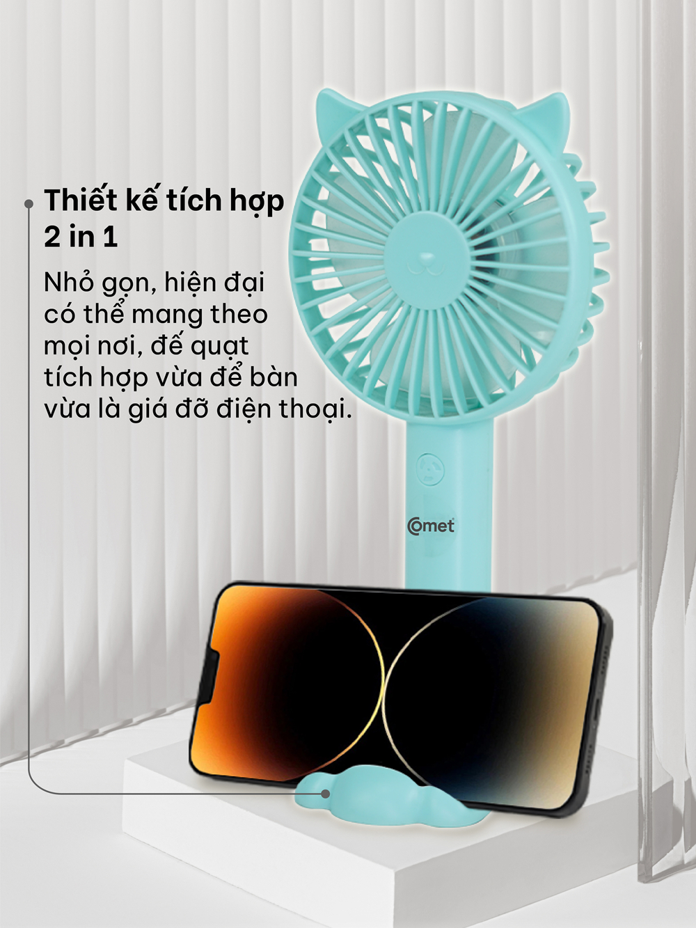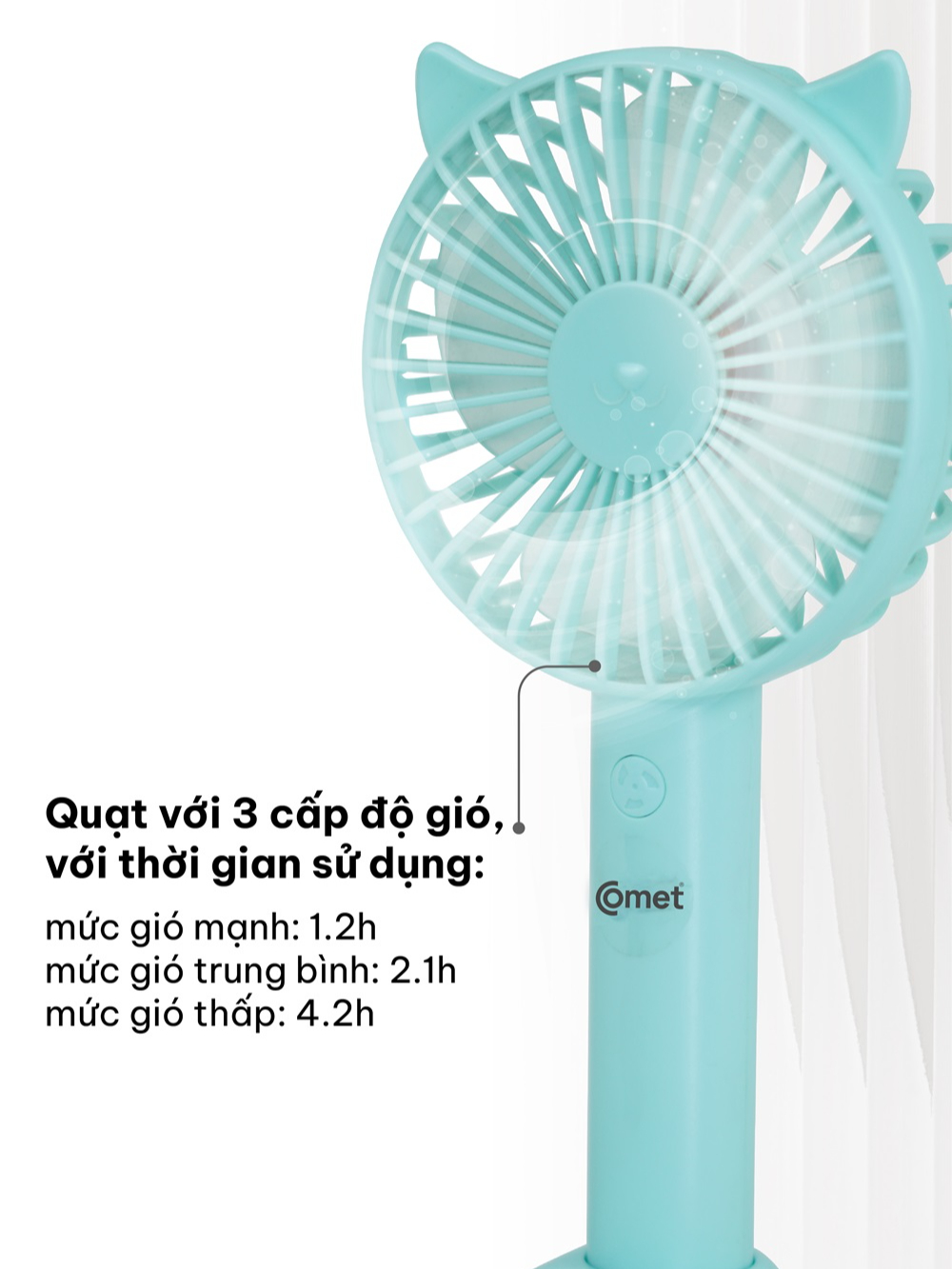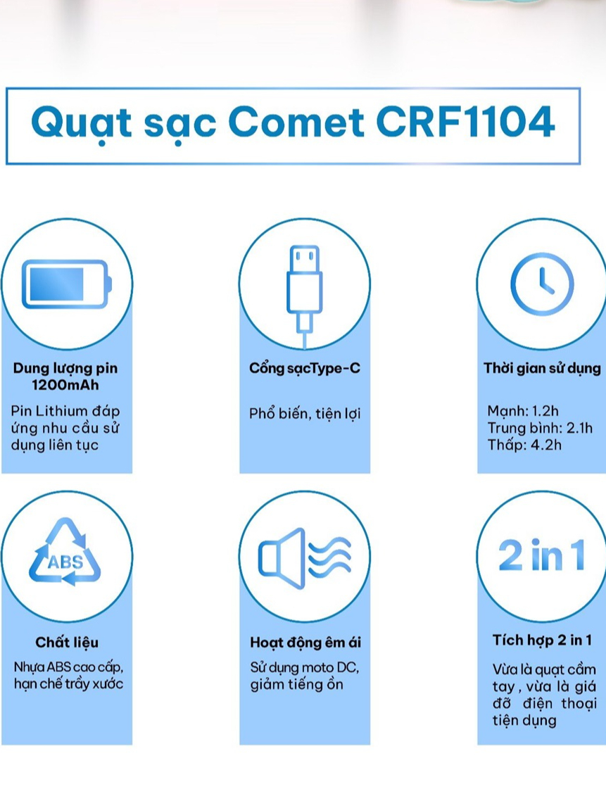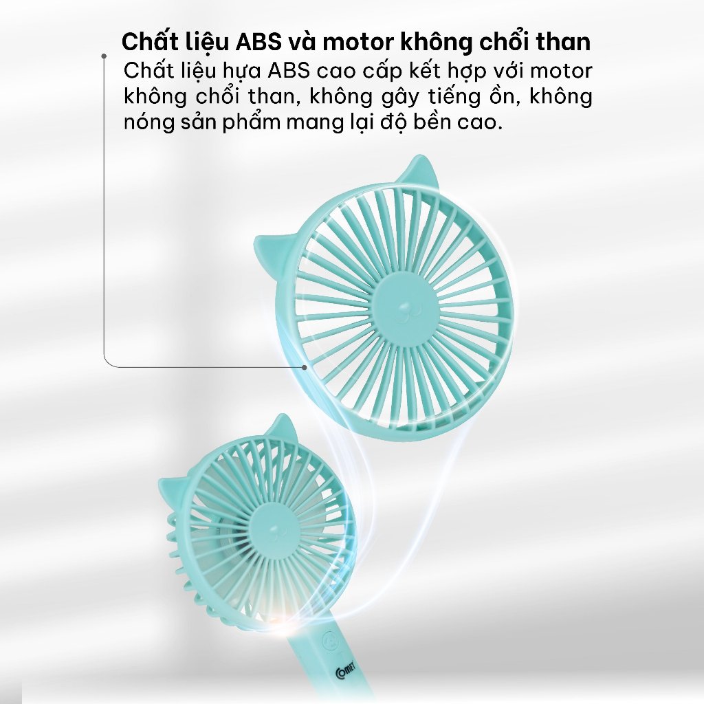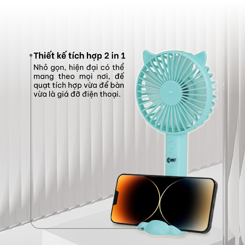 ✨Quạt Sạc Cầm Tay COMET CRF1104 Công Suất 3W, Pin 1200mAh, Có Đế Rời, Kích Thước Nhỏ Gọn hàng chính hãng