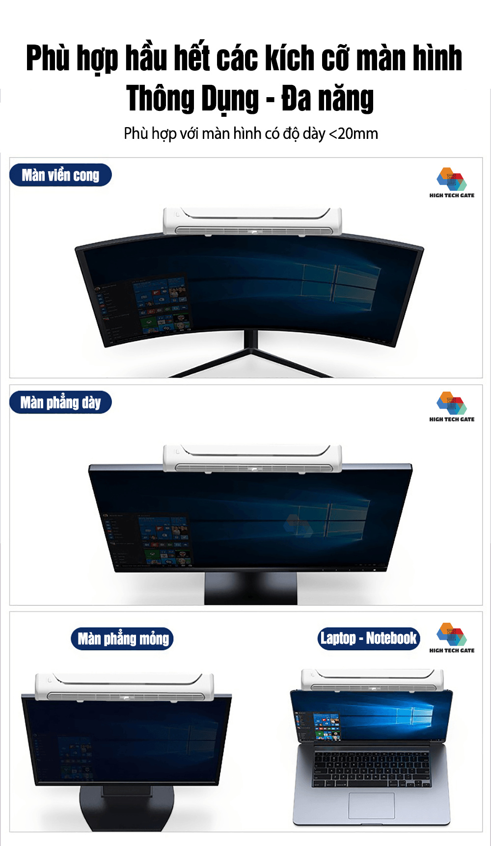 Với thiết kế thông minh phù hợp với hầu hết các loại màn hình phổ biến trên thị trường, từ nhỏ đến to, từ phẳng đến cong.