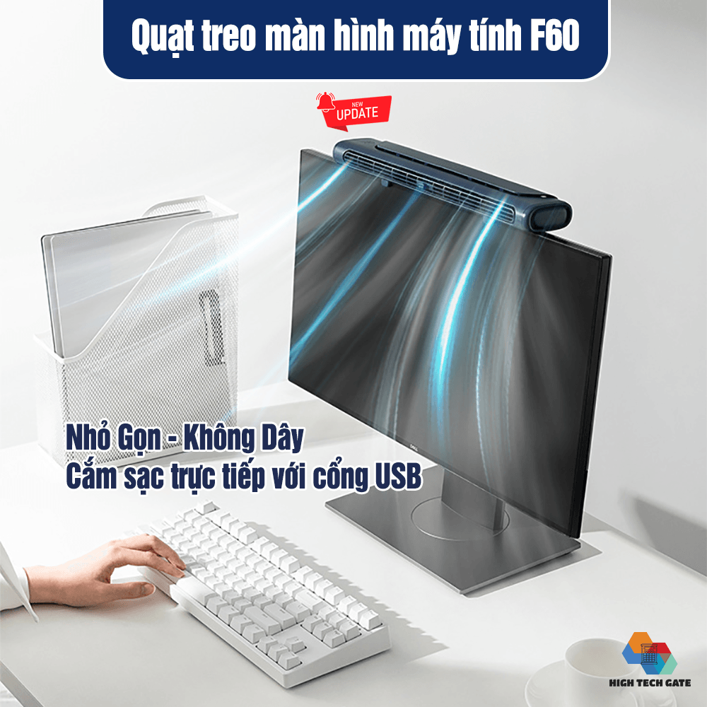 Quạt sạc treo màn hình máy tính F60 sẽ giúp bạn làm việc, học tập một cách thoải mái hơn trong mùa nóng bức, hiệu quả tập trung cao độ hơn trong cuộc sống hiện đại