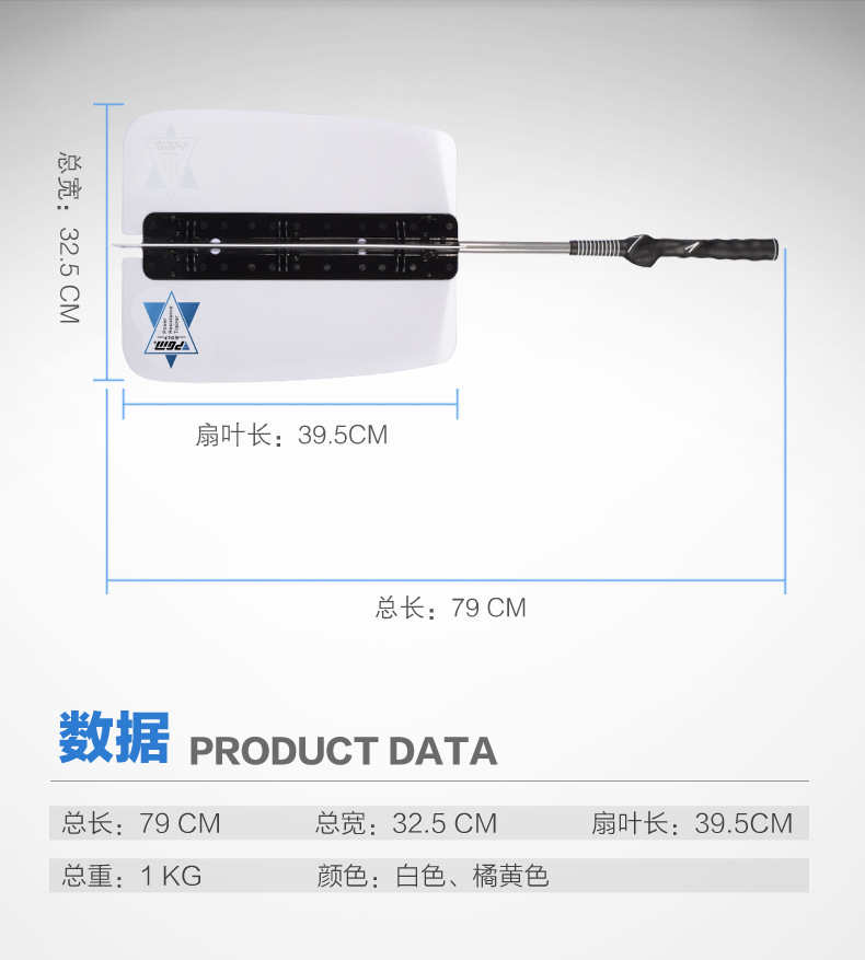 - Kích thước cánh quạt: Rộng 14.5cm, dài 39.5cm, dày 2.5cm.