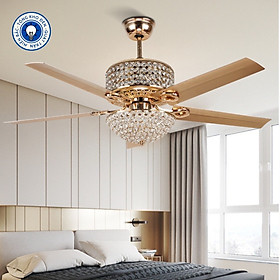 Quạt Trần Đèn Chùm Pha Lê Trang trí Phòng Khách Cao Cấp QT87068 Ngân Tin (Kèm remote điều khiển)