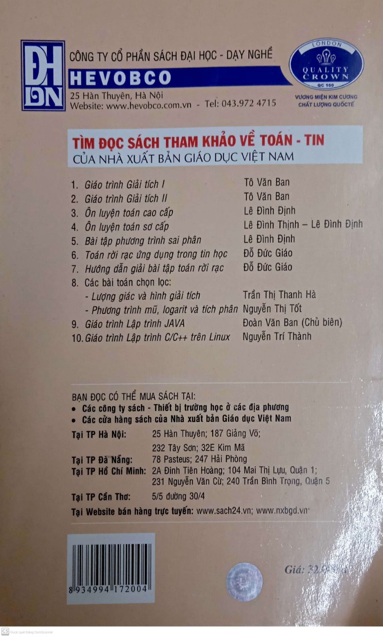 Tên sách: Toán học cao cấp Tập hai: Giải tích Tác giả: ễn Đình Trí (Chủ biên) - . Trần Việt Dũng - . Trần Xuân Hiển - . Nguyễn Xuân Thảo Số trang: 424