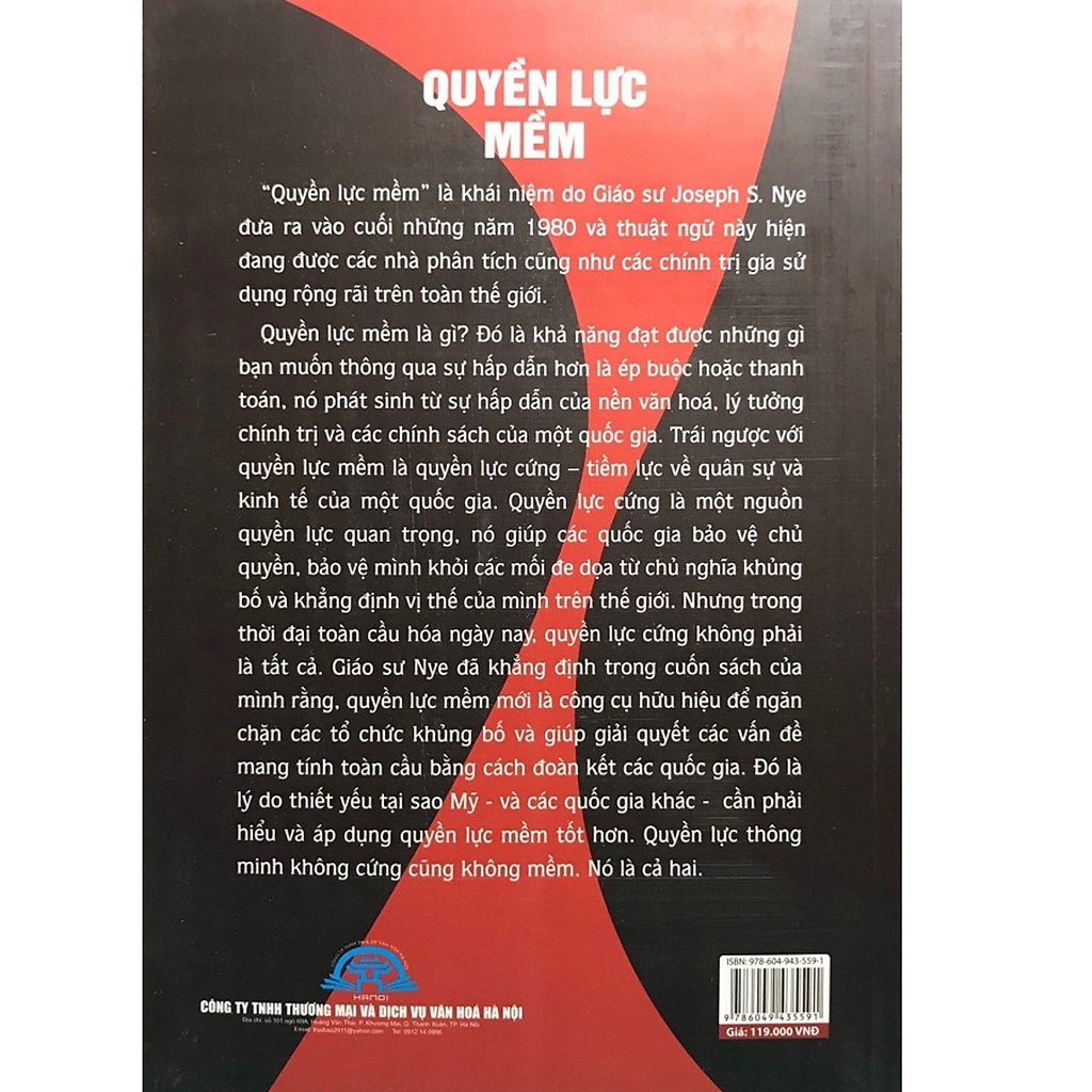 Sách - Quyền Lực Mềm - Ý Niệm Mới Về Thành Công Trong Chính Trị Thế Giới(14)Công ty phát hành: Công ty TNHH Thương mại và Dịch vụ Văn hóa Hà NộiTác Giả: Joseph S.NYE, JRNXB: Nhà Xuất bản Tri ThứcK...