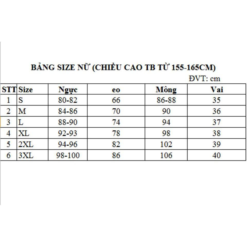 size 10: 135-140cm; 36-40kg; ngực 72-74cm