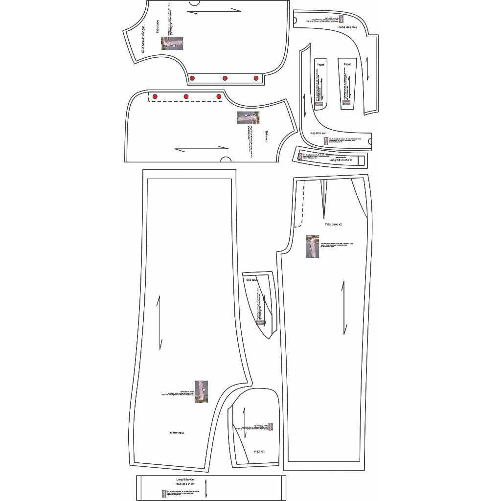 Rập được in từ giấy A0 – Dạng bảng vẽ, không phải sản phẩm. Rập đã được may thử, hợp với vải đũi, linen. Quần dáng sau có thun.