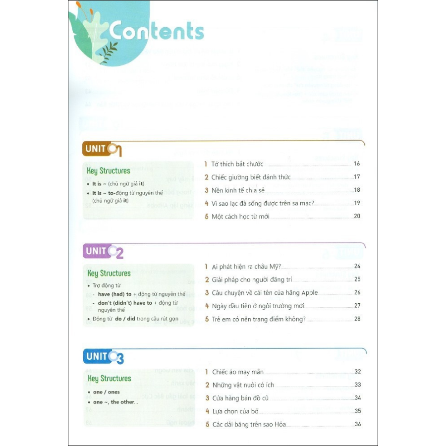 • Mỗi bài đọc đều có các câu hỏi đi kèm để kiểm tra năng lực đọc hiểu của học sinh, ôn luyện từ vựng và thực hành các kiến thức ngữ pháp. Cuối sách là đáp án kèm giải thích chi tiết, bài dịch sơ và dịch hoàn chỉnh, phần giải thích một số cấu trúc ngữ pháp xuất hiện trong bài.