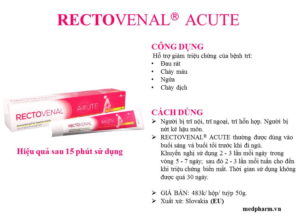 RECTOVENALACUTE giúp giảm đ-au, r-át, ngăn chảy m-á-u, ngứa, chảy dịch chỉ sau 15 phút sử dụng.