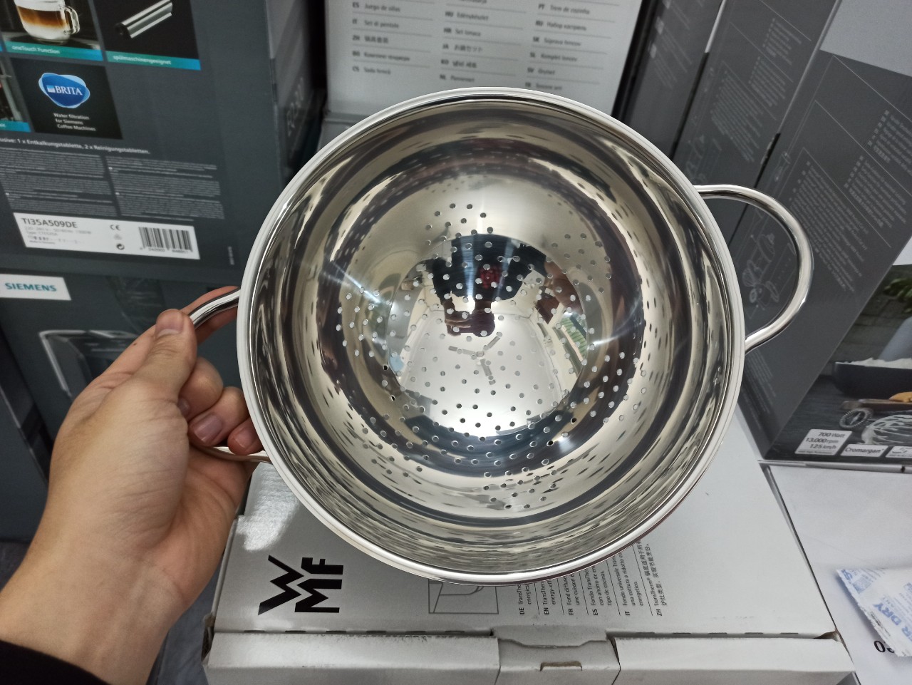 Đối với những người yêu thích thiết kế quan tâm đến chất lượng: cột màu đẹp và bền từ WMF đặc biệt linh hoạt. Dùng nó để rửa xà lách, rau và trái cây hoặc để nước từ mì ống hoặc khoai tây thoát nhanh qua các lỗ lớn. Các bộ lọc chất lượng cao làm bằng Cromargan không gỉ, không mùi vị, dễ chăm sóc và giữ hình dạng ngay cả khi sử dụng thường xuyên. Trong các phiên bản và thiết kế khác nhau, bộ lọc là những dụng cụ trợ giúp nhà bếp không thể phá hủy với chất lượng WMF tốt thông thường, giúp công việc làm bếp của bạn dễ dàng hơn trong một thời gian dài.