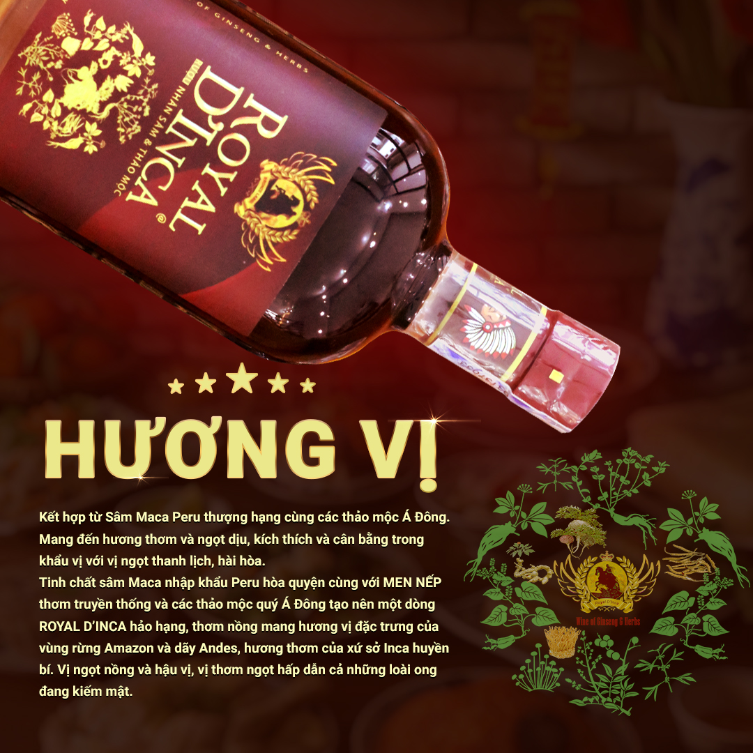 Tên sản phẩm: Royal D’Inca - Rượu sâm Maca & thảo mộc