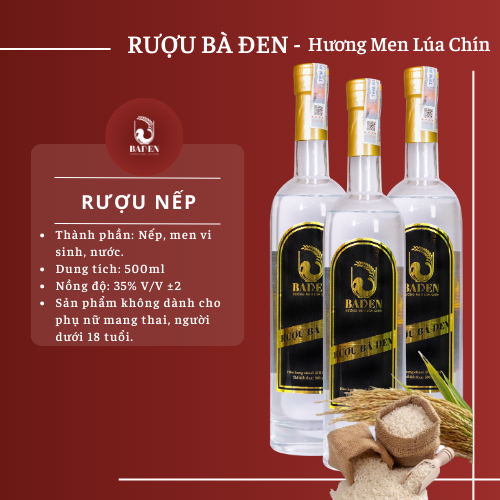 Mua tại TiktokRượu Nếp Bà Đen chai thủy tinh 500ml với nguyên liệu chính là nếp chọn lọc đạt chất lượng được nấu chín kết hợp với men vi sinh .