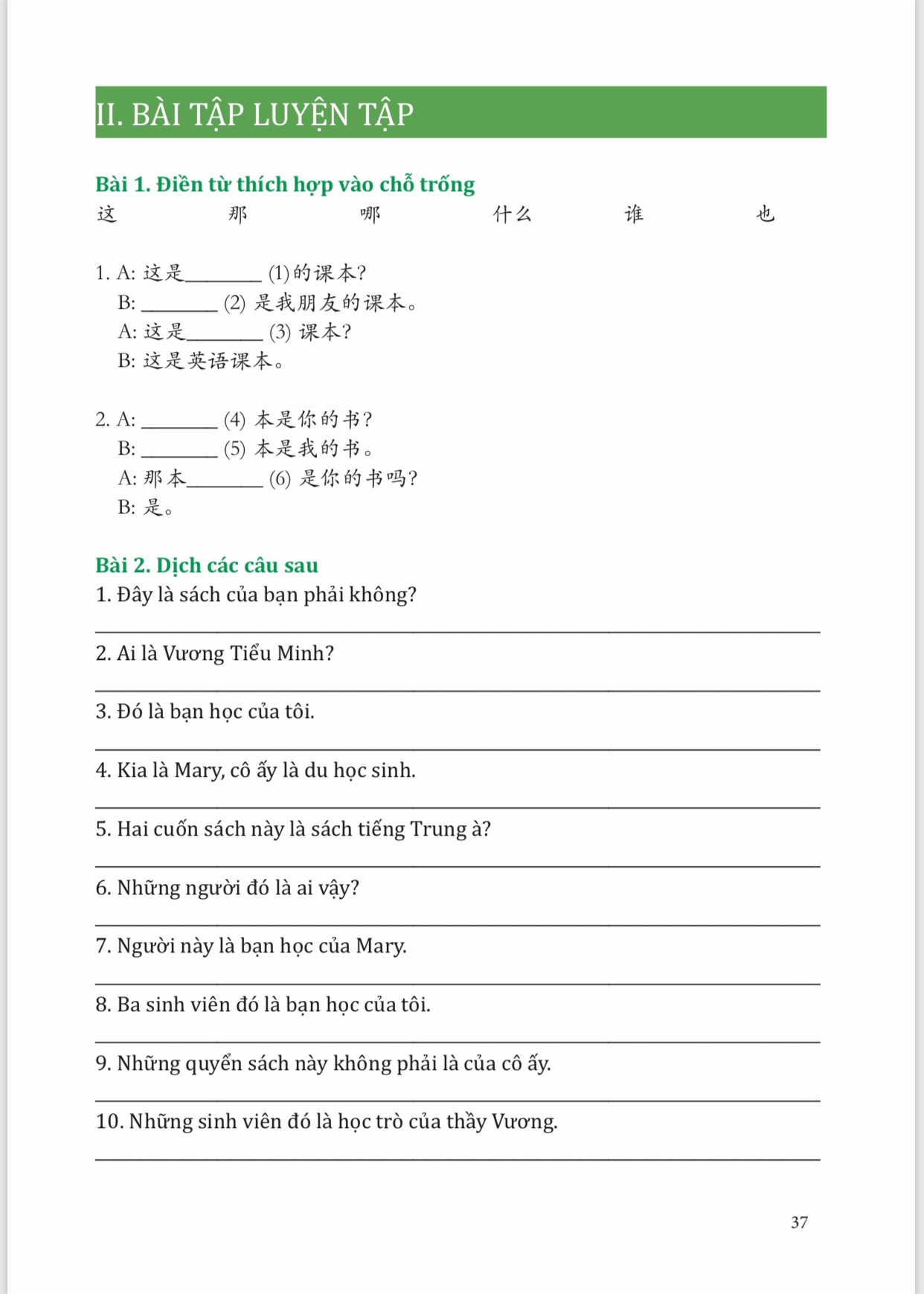 1.BÀI TẬP DỊCH TRUNG VIỆT-VIỆT TRUNG CỦNG CỐ CẤU TRÚC CỐ ĐỊNH & NGỮ PHÁP (Dựa theo ngữ pháp tiếng Hán Sơ trung cấp hiện đại" Loại bìa Bìa mềm Số trang 340 SKU