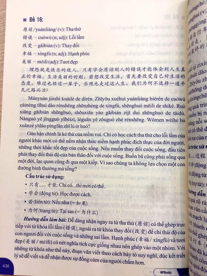 - Bài Tập Củng Cố Ngữ Pháp HSK – Cấu Trúc Giao Tiếp & Luyện Viết HSK 4-5 Kèm Đáp Án Tác giả: Nhật Phạm Số trang: 490 Ngày xuất bản: 01/11/2017 Nhà Xuất Bản: Dân Trí Giá bìa: 300,000 VNĐ MUỐN GIỎI NGỮ PHÁP CẤU TRÚC TIẾNG TRUNGMUỐN VIẾT HSK4-5 LÊN TRÌNH️Đừng bỏ qua cuốn này! ️ Bài tập ngữ pháp HSK1-6 ( Full ngữ pháp tiếng Trung) Luyện viết HSK4-5 với các đề thật HSK, sách có đáp án chi tiết, hướng dẫn làm bài! ️Lưu ý: Sách phù hợp cho các đối tượng từ cơ bản đến nâng cao! Đây là cuốn sách với tuyển tập các bài tập luyện dịch từ cơ bản đến nâng cao, phù hợp với các đối tượng bắt đầu học tiếng Trung với phần 1 "BÀI TẬP DỊCH TRUNG VIỆT-VIỆT TRUNG CỦNG CỐ CẤU TRÚC CỐ ĐỊNH & NGỮ PHÁP (Dựa theo ngữ pháp tiếng Hán Sơ trung cấp hiện đại", còn các đối tượng đã học đến HSK5-6 vẫn hoàn toàn có thể sử dụng để nâng cao kỹ năng biên dịch cũng như phục vụ cho phiên dịch với phần 2 "BÀI TẬP DỊCH NÂNG CAO KỸ NĂNG DỊCH VÀ TĂNG CƯỜNG CẤU TRÚC DỊCH NÂNG CAO (Có cung cấp cấu trúc và sử dụng). Cuốn sách được biên soạn chi tiết tỉ mỉ với các phần bài tập kèm phần đáp án có hỗ trợ từ vựng, cấu trúc hiếm gặp, cấu trúc nâng cao. Phần 1 là các câu tiếng Việt hoặc tiếng Trung thường sử dụng được biên soạn dựa theo hệ thống ngữ pháp tiếng Hán hiện đại ở cả mảng giao tiếp và hàn lâm học thuật giúp các bạn cải thiện, hoàn thiện kiến thức cũng như thực hành ứng dụng các mảng ngữ pháp, cấu trúc, đồng thời củng cố thêm vốn từ vựng tiếng Trung ứng dụng. Phần 2 là các đoạn văn ngắn với dung lượng 100-300 từ trong các lĩnh vực của đời sống như giao tiếp thương mại, kinh tế, giáo dục, du lịch, địa lý, đất nước con người Việt Nam, Phần này giúp các bạn rèn luyện thêm kỹ năng dịch, tích lũy các cấu trúc tiếng Trung nâng cao cũng như lượng từ vựng vô cùng phong phú ở nhiều lĩnh vực.Để có được cuốn sách giá trị này, NP BOOKS xin chân thành cảm ơn các biên tập viên Linh Chi, Thùy Linh, Hải Yến đã hỗ trợ chủ biên Nhật Phạm, đặc biệt cảm ơn cô giáo Khâu Phượng Nghi (Giáo viên Trung Quốc) đã dành nhiều thời gian để kiểm duyệt nội dung, giúp cho cuốn sách có được tính bản ngữ tối đa đối với ngôn ngữ Trung Quốc.Chân thành cảm ơn độc giả đã, đang luôn yêu quý và ủng hộ những sản phẩm của NP BOOKS, hy vọng rằng độc giả sẽ có những ý kiến đóng góp để cuốn sách được hoàn thiện hơn nữa trong những lần tái bản sau.