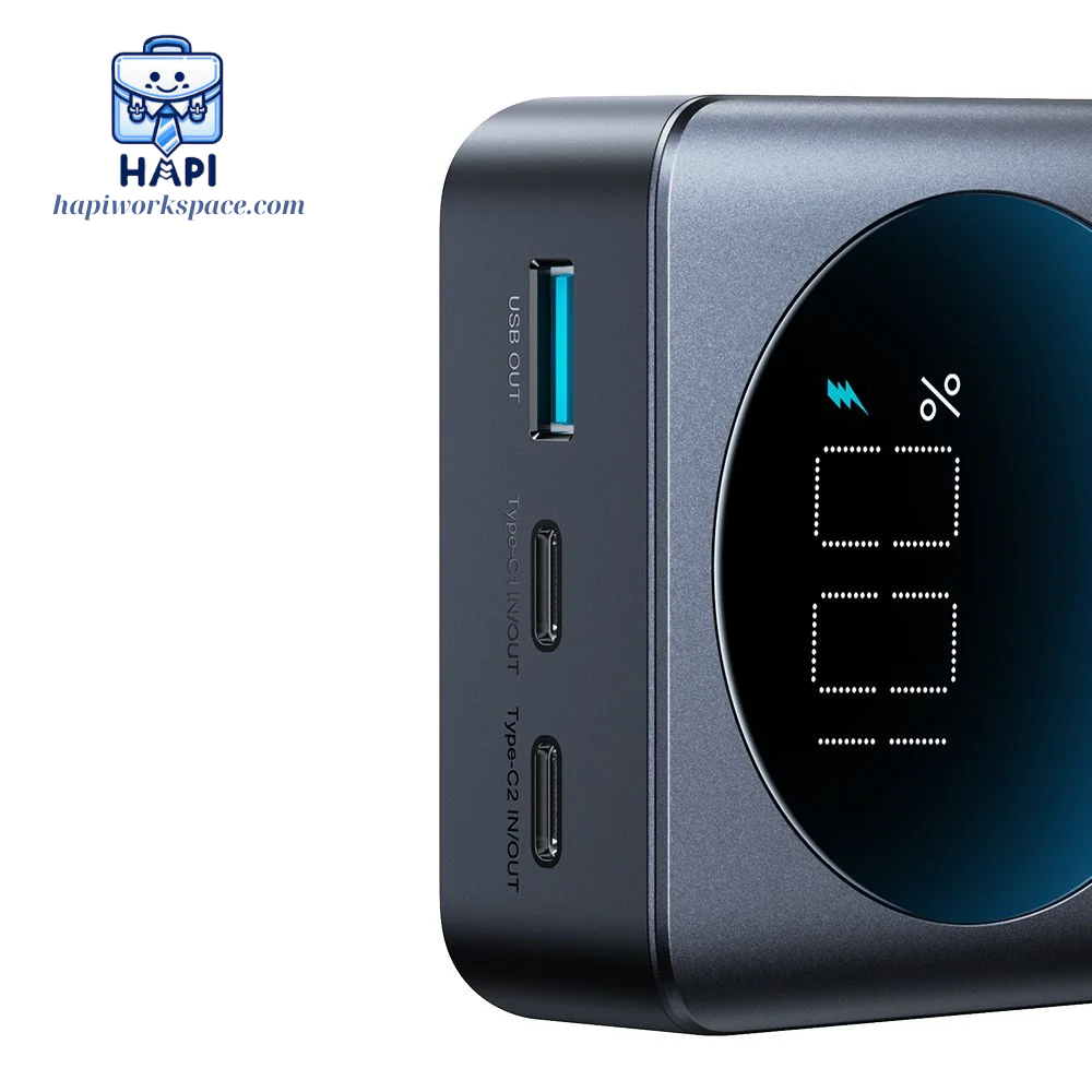 Tính năng Dung lượng 10.000mAh tương ứng 37Wh cung cấp đến nhiều giờ sử dụng cho các thiết bị điện tử 3 cổng sạc ra gồm 1 USB-A và 2 USB-C, thoải mái sạc 3