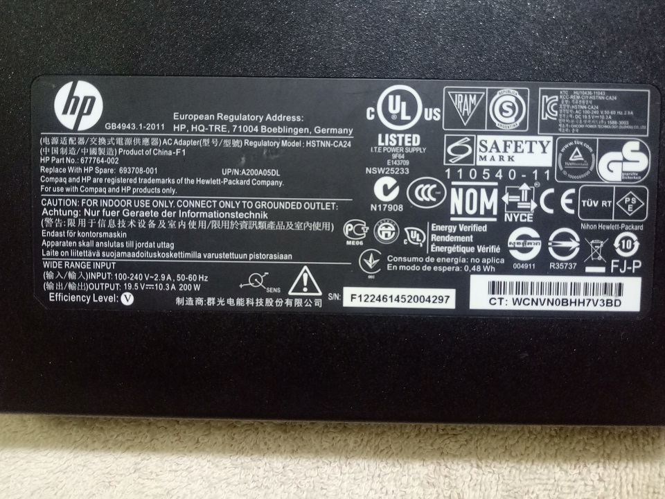 Tên sạc: Sạc dành cho Laptop HP Omen 15-dc0077TX Công suất: 200W Chuẩn chân cắm: (4.5 mm * 3.0 mm) Chân Kim Loại nhỏ(mới) Điện áp vào(input): 100V - 240V Điện áp ra(output) : 19.5V-10.3A