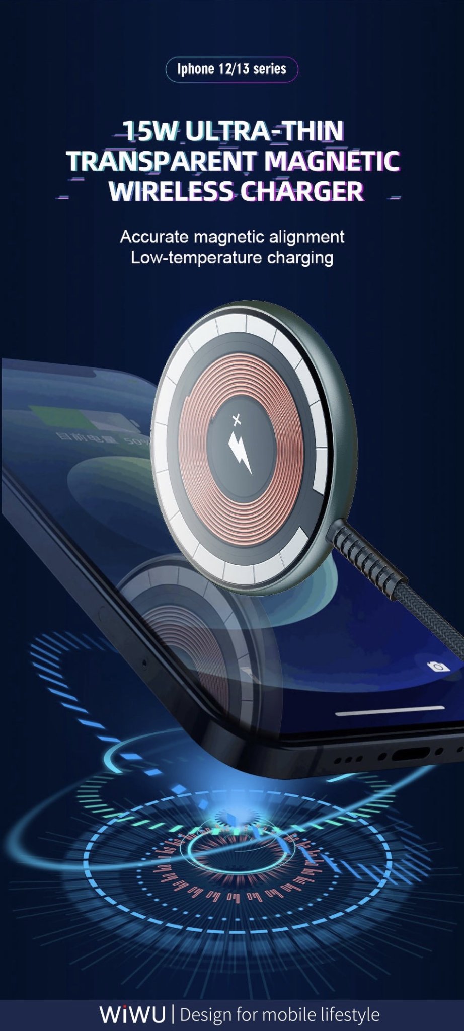 ✨Sạc Wiwu M14 Magnetic Wireless 15W dành cho Smart Phone, Android Hỗ Trợ Bộ Sạc Không Dây 15W - Hàng Chính Hãng